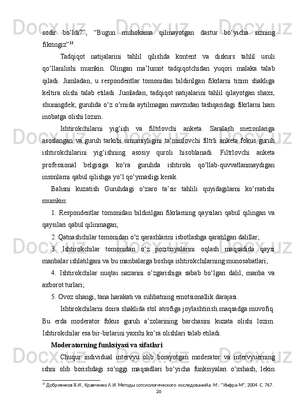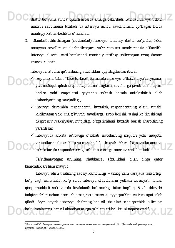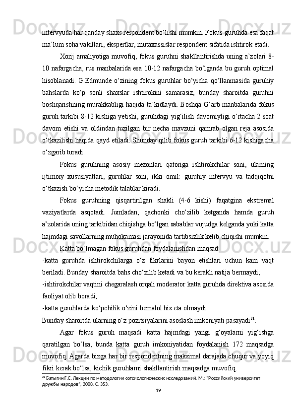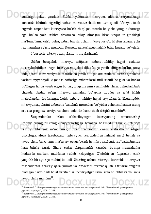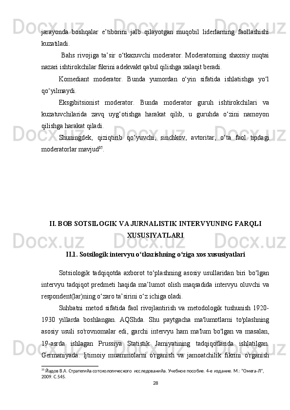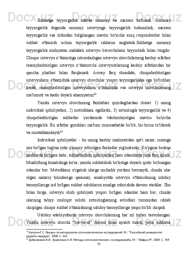 zimmasiga yuklagan o‘rta malakali suhbatdoshlarni kiritish mumkin 16