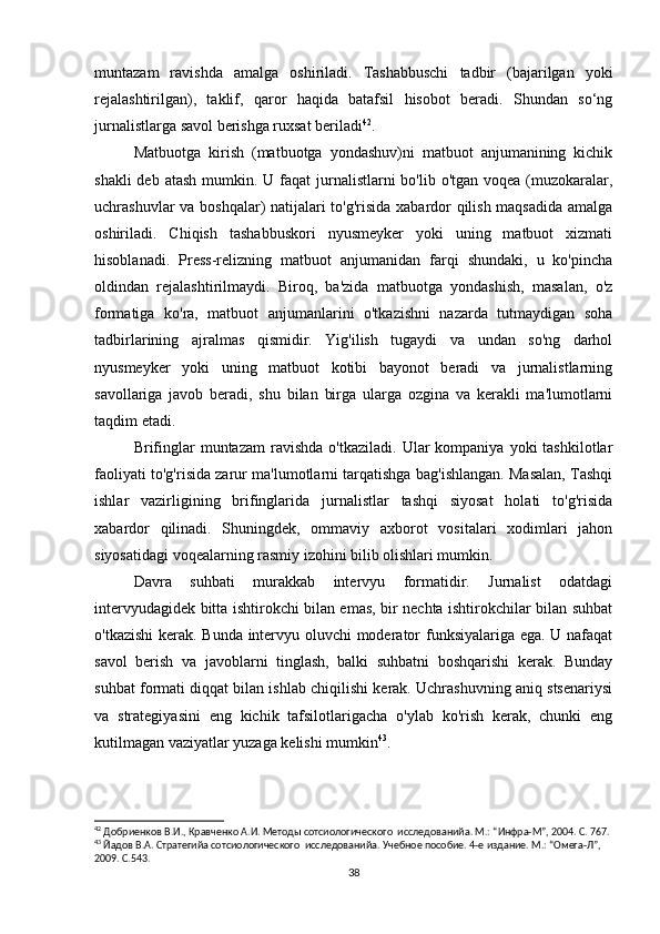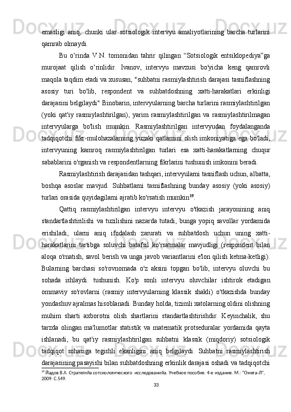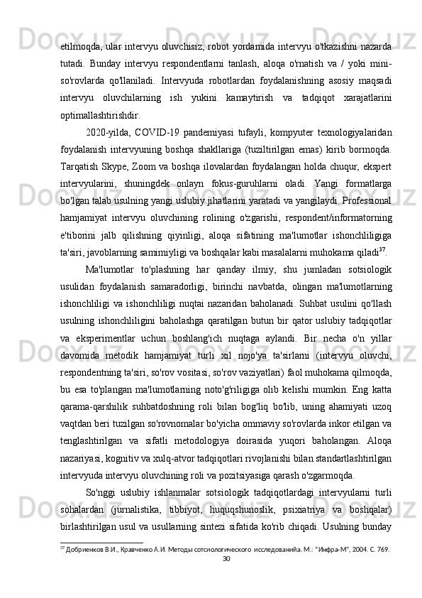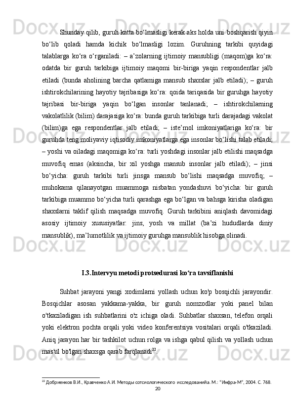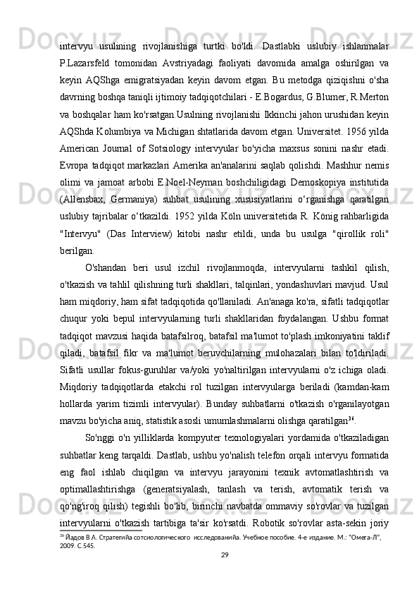 kuzatilgan.   Sotsiologik   malaka   chuqur   suhbatlar   metodologiyasini   tez