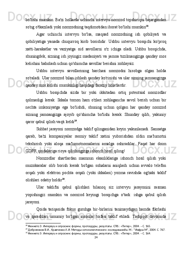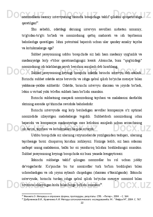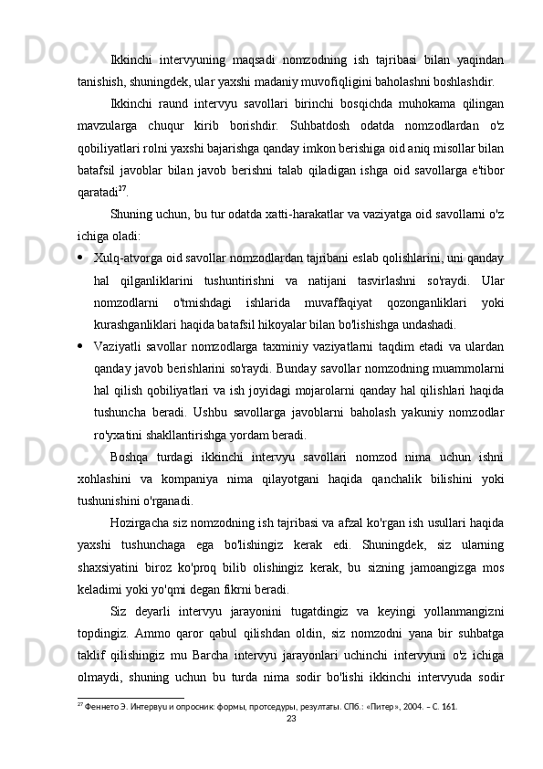 qobiliyatiga   yanada   chuqurroq   kirib   borishdir.   Ushbu   intervyu   bosqichi   ko'proq