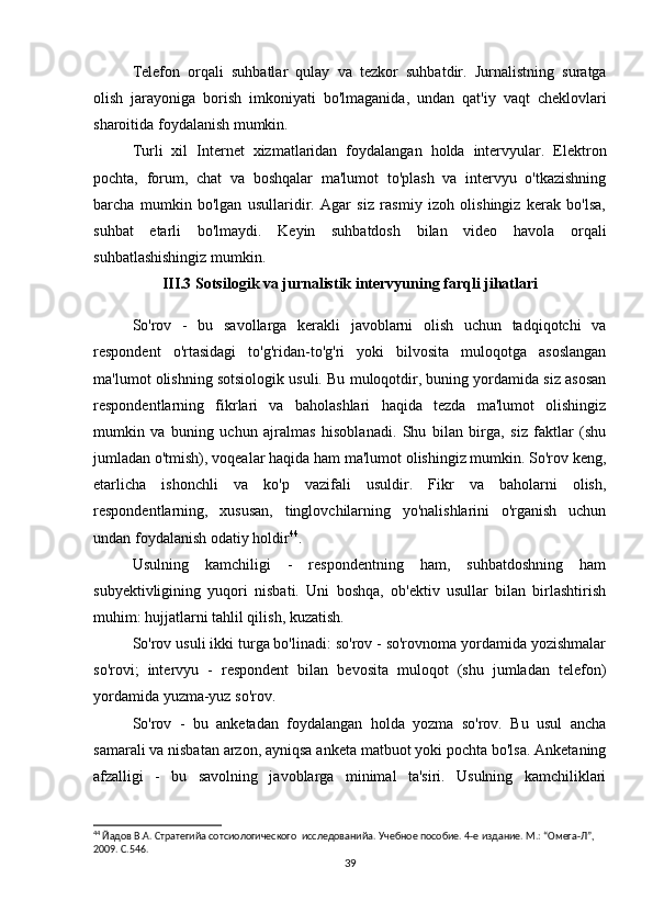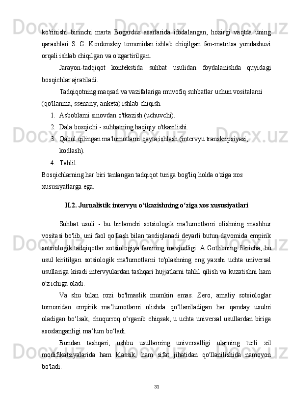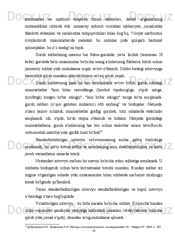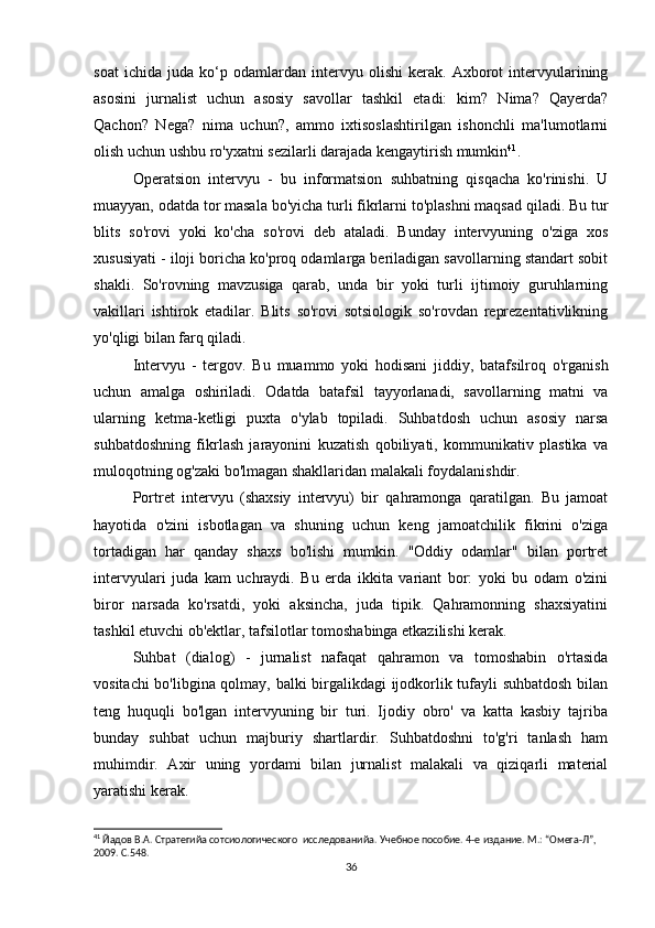 Sotsiologik va jurnalisttik intervyuni xarakterli xususiyatlar