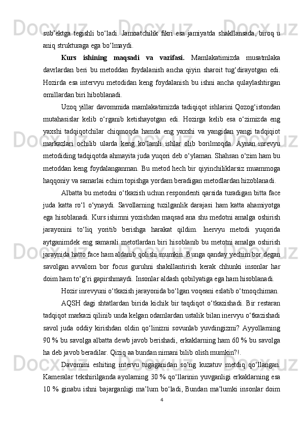 aksincha,   respondentlar   uchun   erkin   va   har   tomonlama   fikrlab   javob   beradigan