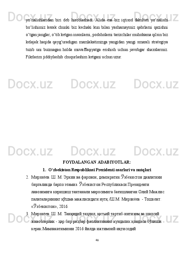 hayotga   tatbiq   etishga   turtki   bo‘ladi.   Zero,   O‘zbekiston   Respublikasi   Prezidenti