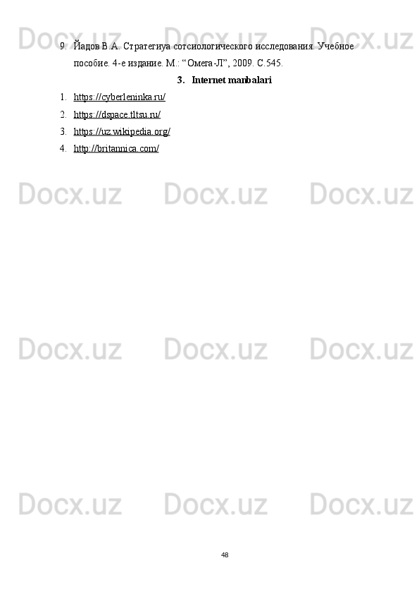 Йaдов В.А. Стратегийa сотсиологического  исследованийa. Учебное пособие. 4-е издание. М.: “Омега-Л”,
