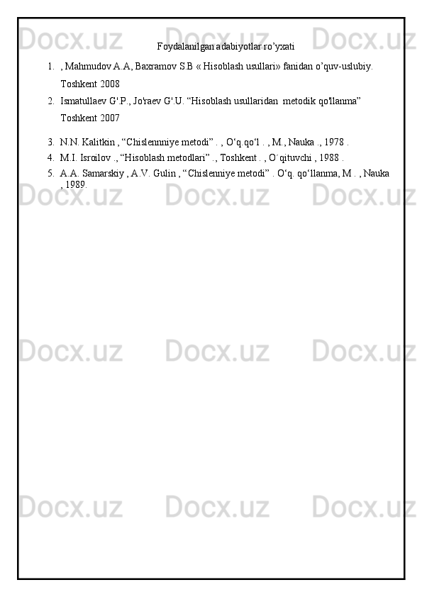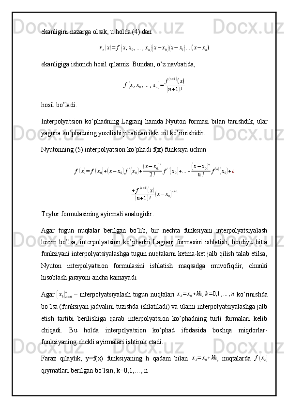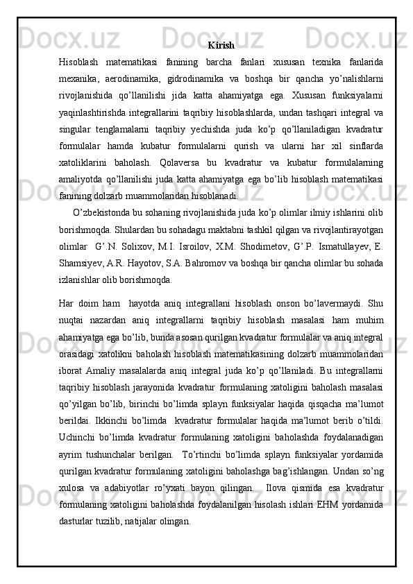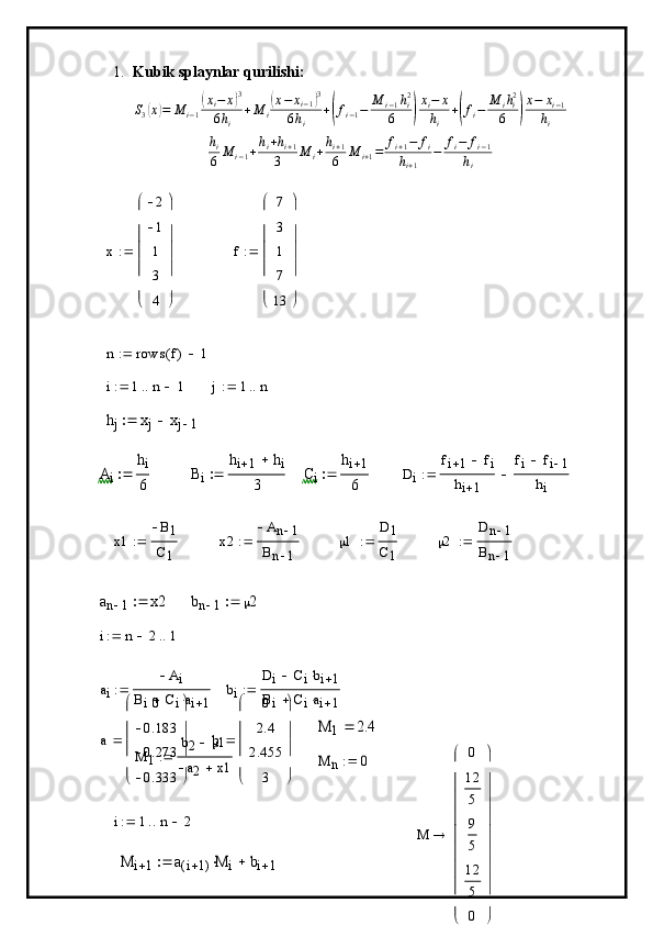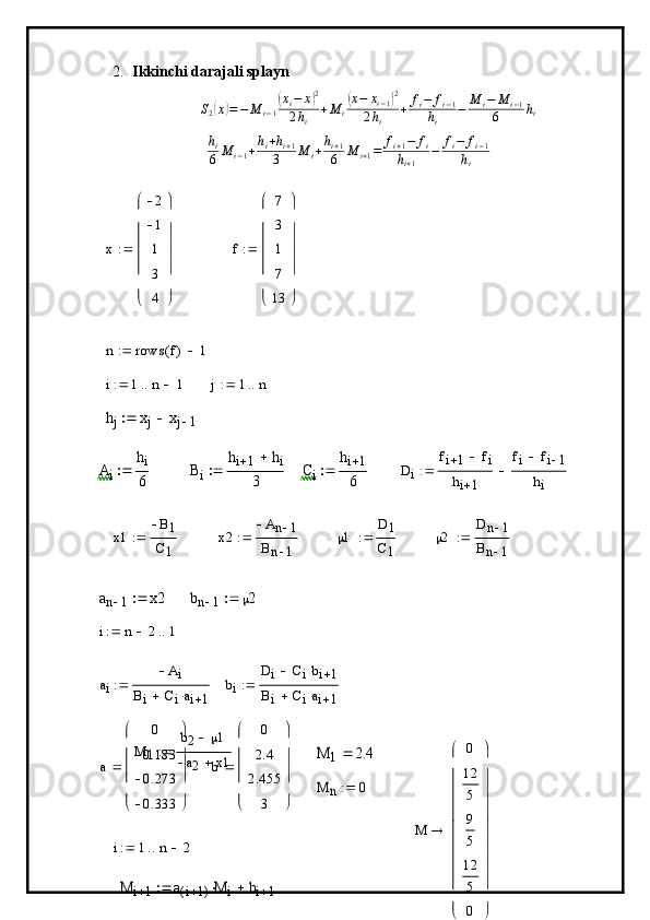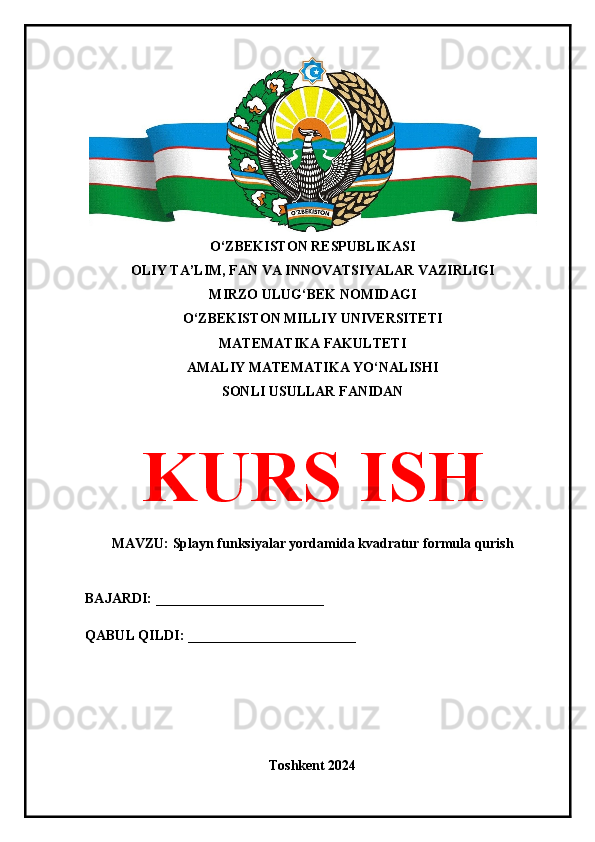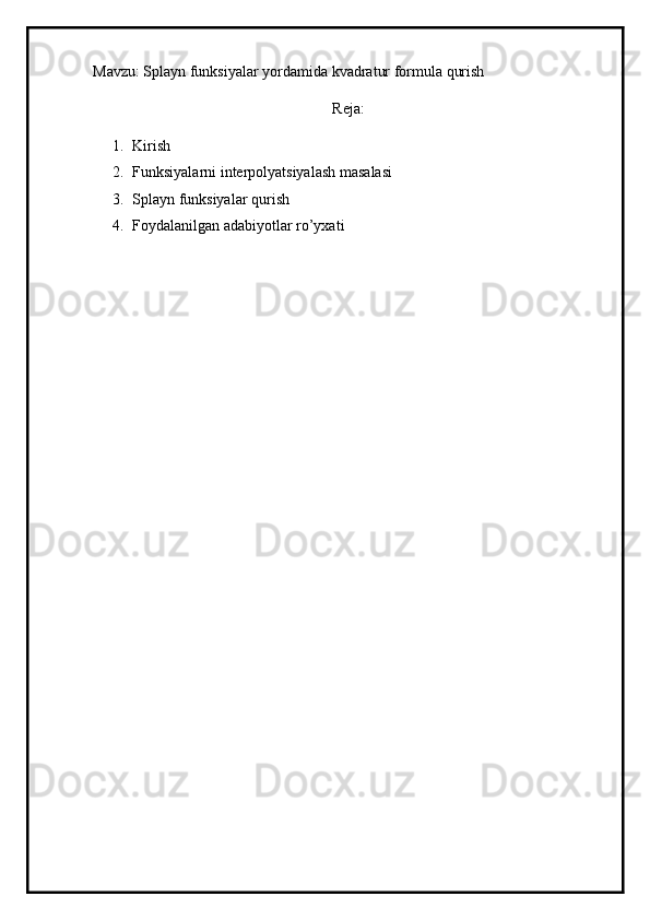 Mavzu: Splayn funksiyalar yordamida kvadratur formula qurish