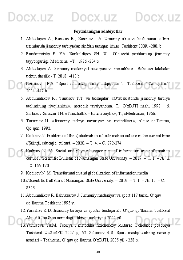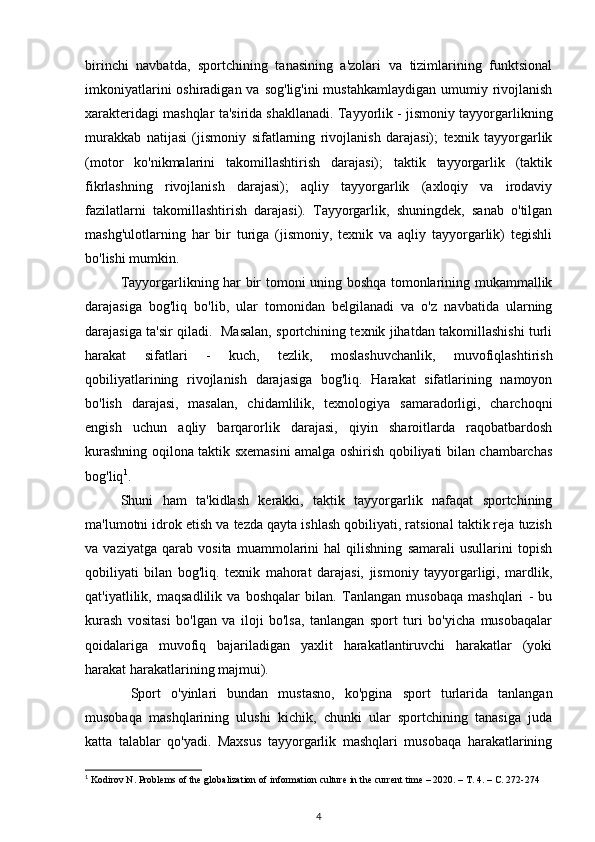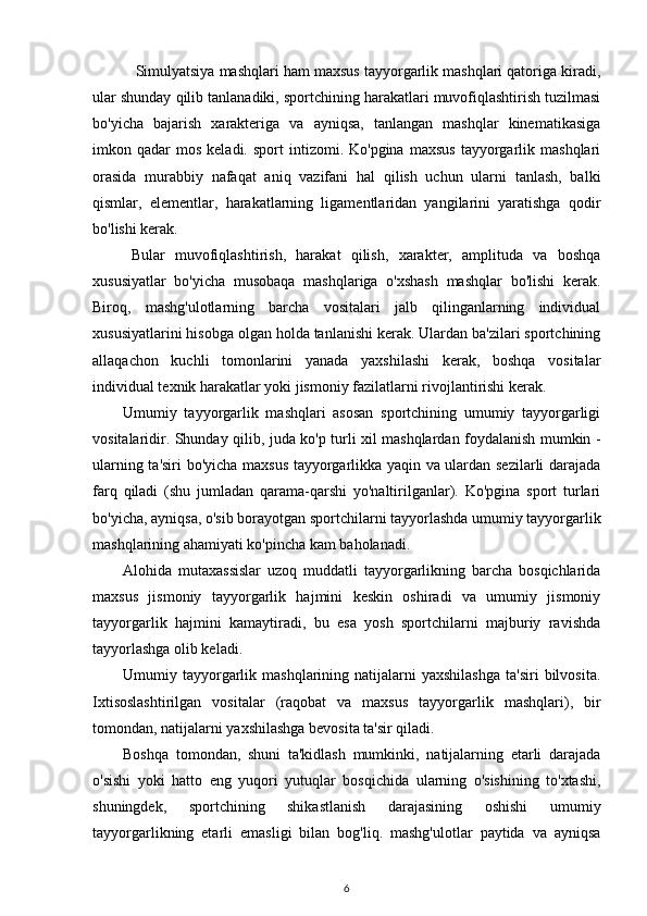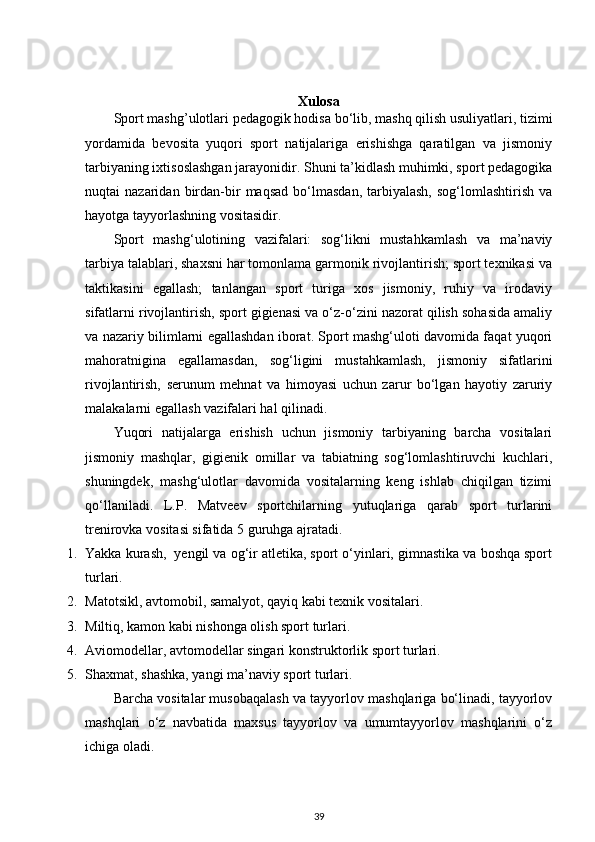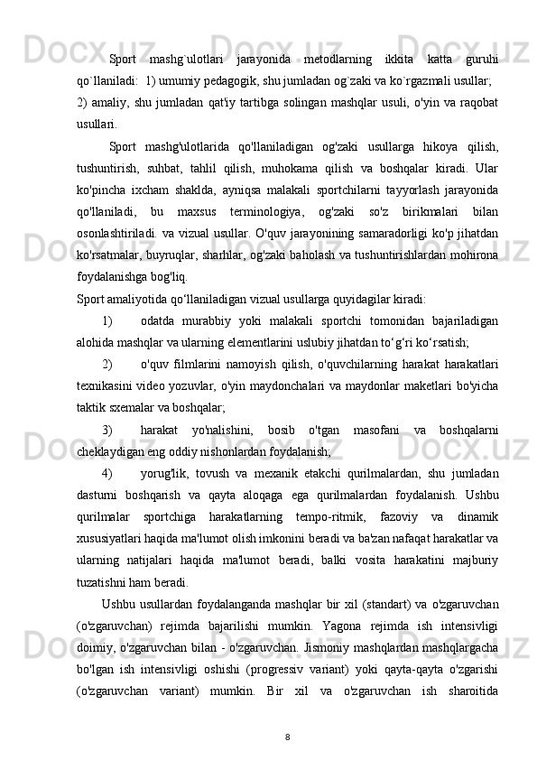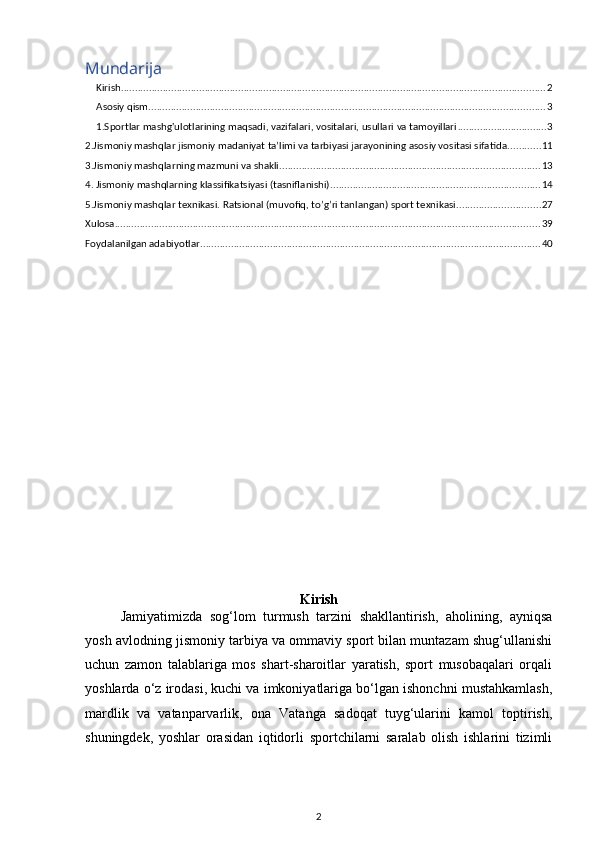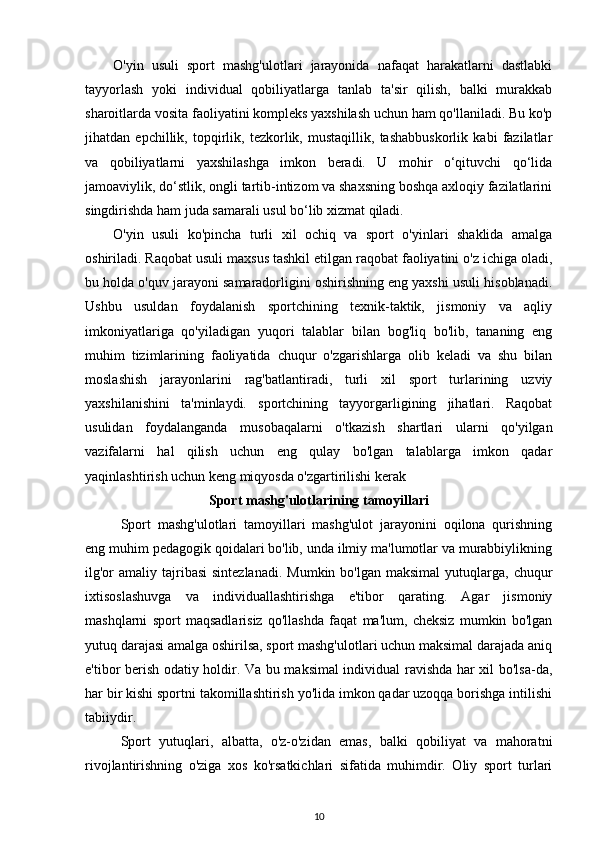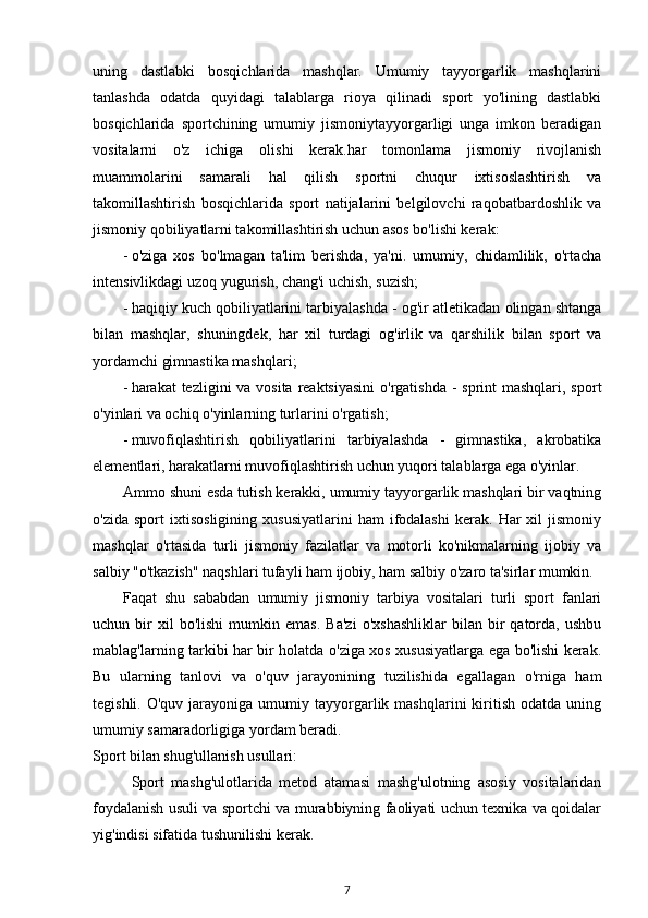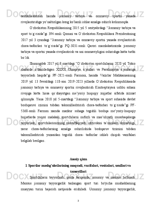 1.Sportlar mashg'ulotlarining maqsadi, vazifalari, vositalari, usullari va tamoyillari 3