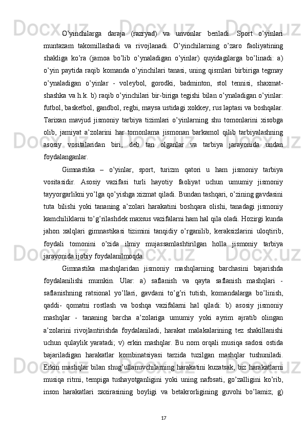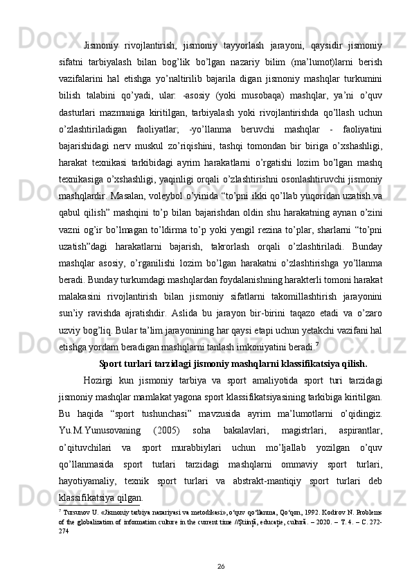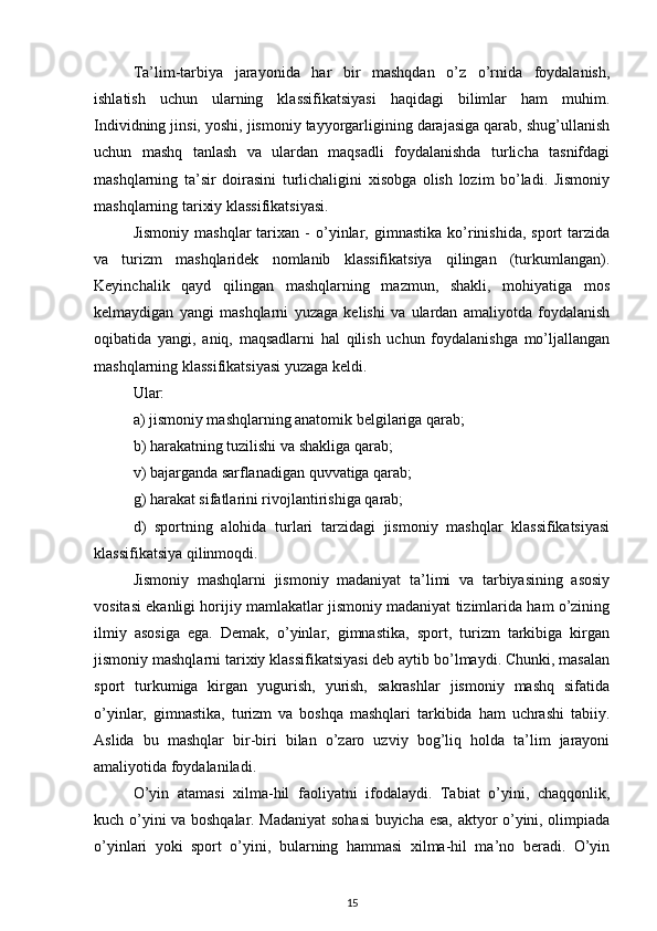 4. Jismoniy mashqlarning klassifikatsiyasi (tasniflanishi). 14