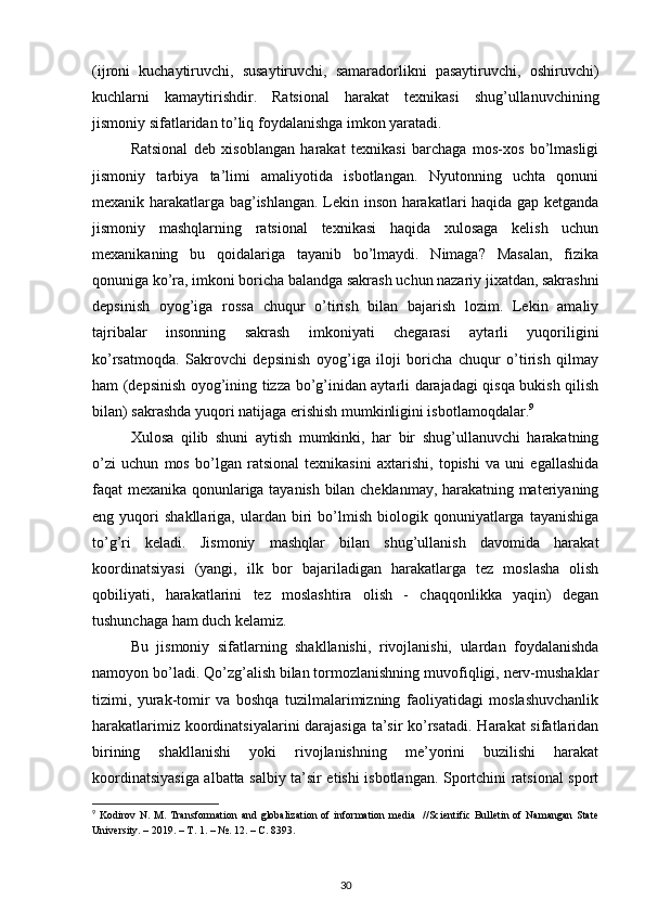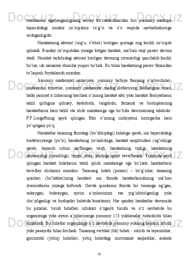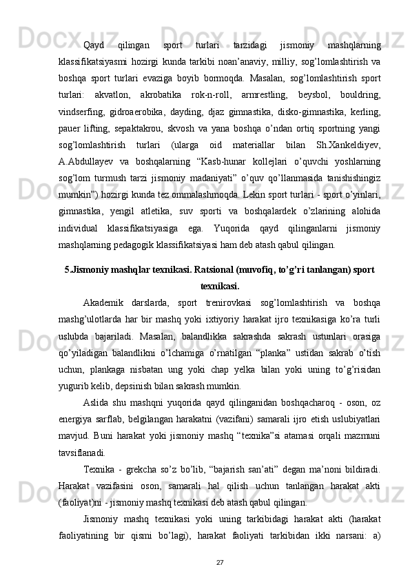 5.Jismoniy mashqlar texnikasi. Ratsional (muvofiq, to’g’ri tanlangan) sport texnikasi. 26