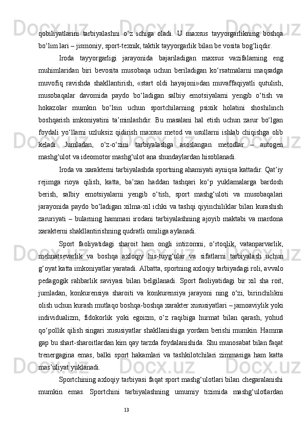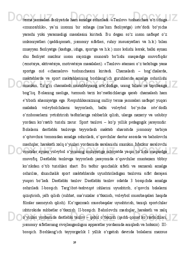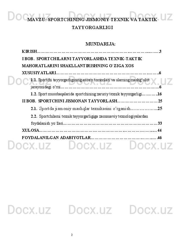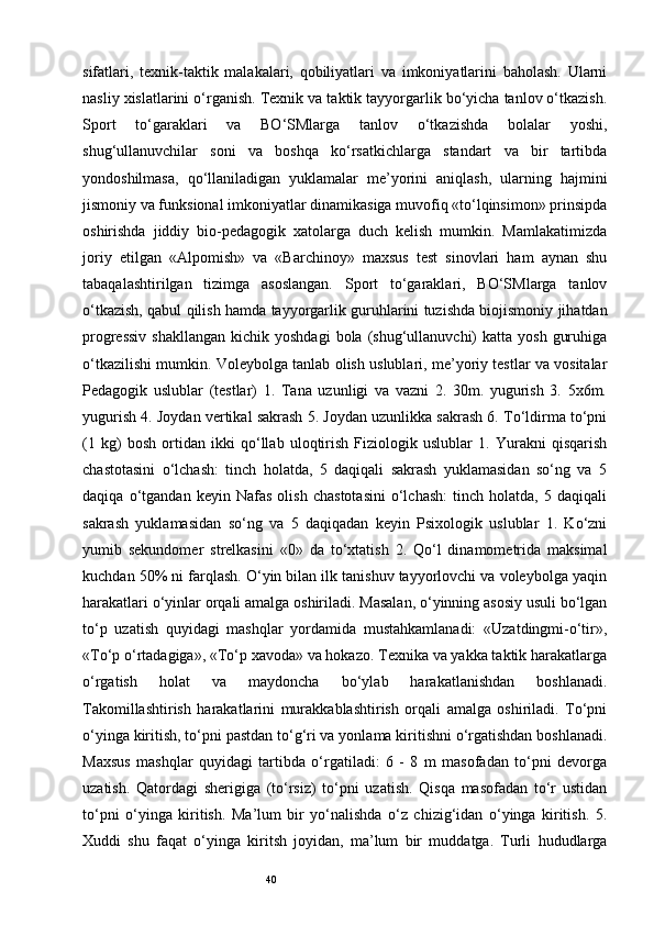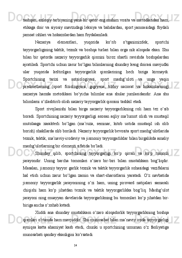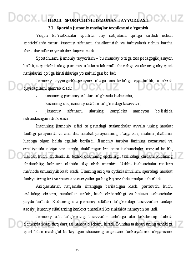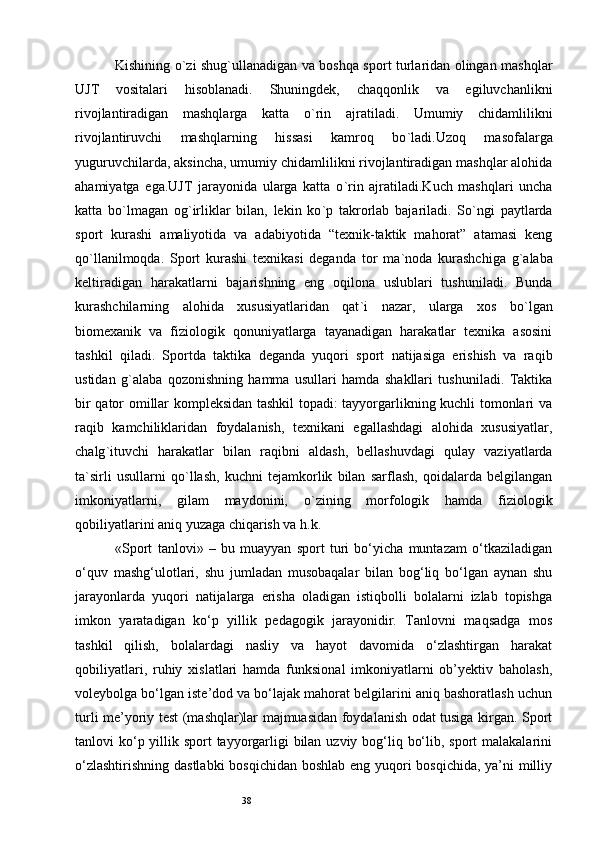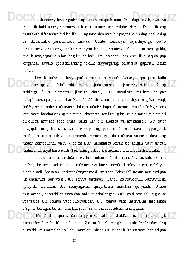 Sportchining jismoniy texnik va taktik tayyorgarligi