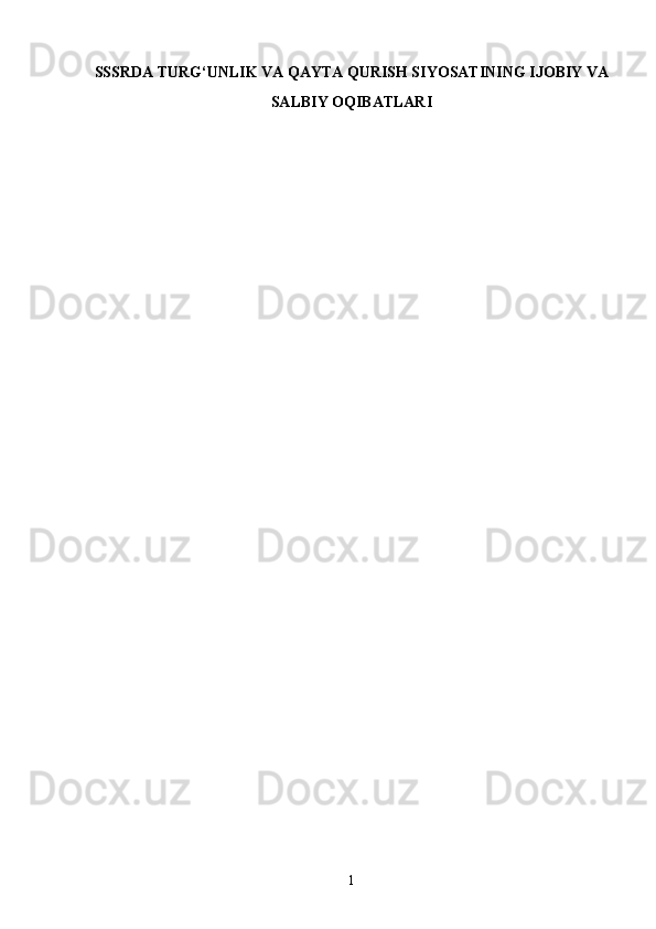SSSRda turg’unlik va qayta qurish siyosatining ijobiy va salbiy oqibatlari