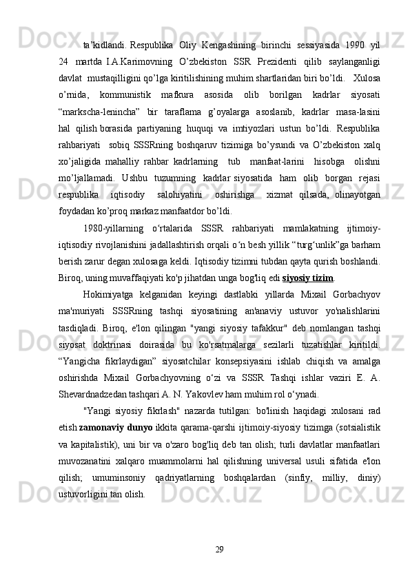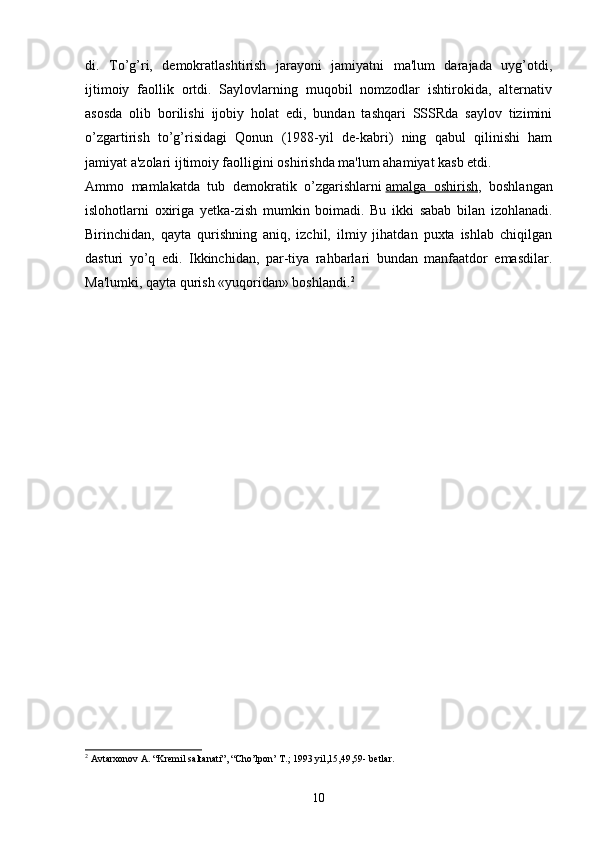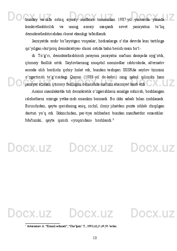 I.3 Sovet jamiyatini demokratlashtirish va uning amalda asossizligi 14