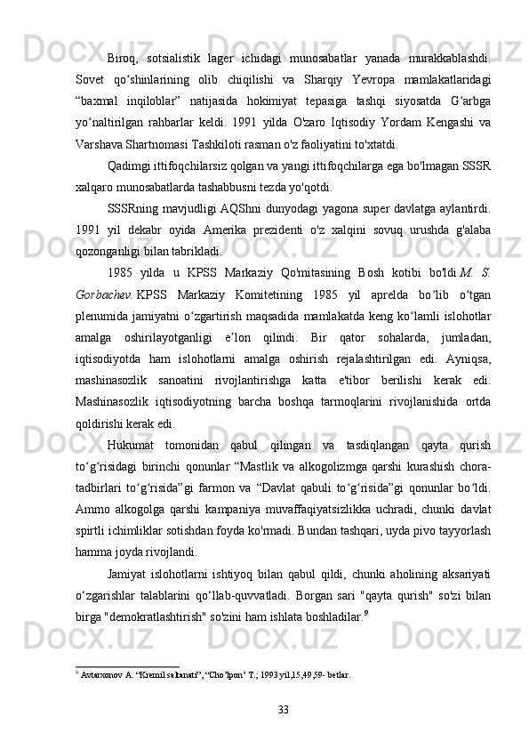 I.2. «QAYTA QURISH» siyosati va ijtimoiy-siyosiy inqiroz. 11