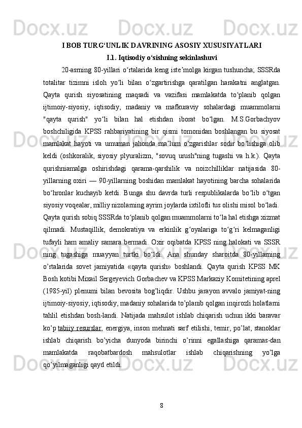 I BOB TURG‘UNLIK DAVRINING ASOSIY XUSUSIYATLARI 8