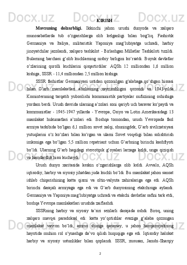 SSSR ning ikkinchi jahon urushidan keyin tashqi siyosati