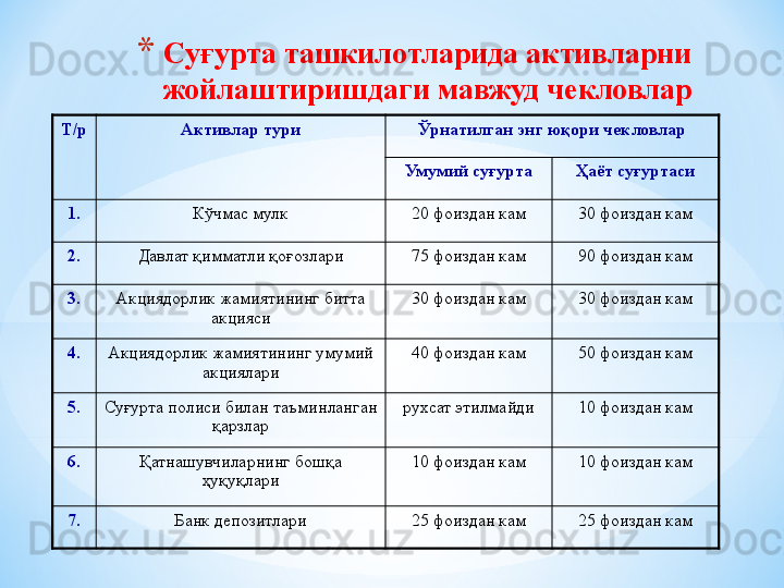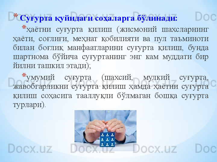 Суғурта ташкилотларида назорат ишларини ташкил этиш