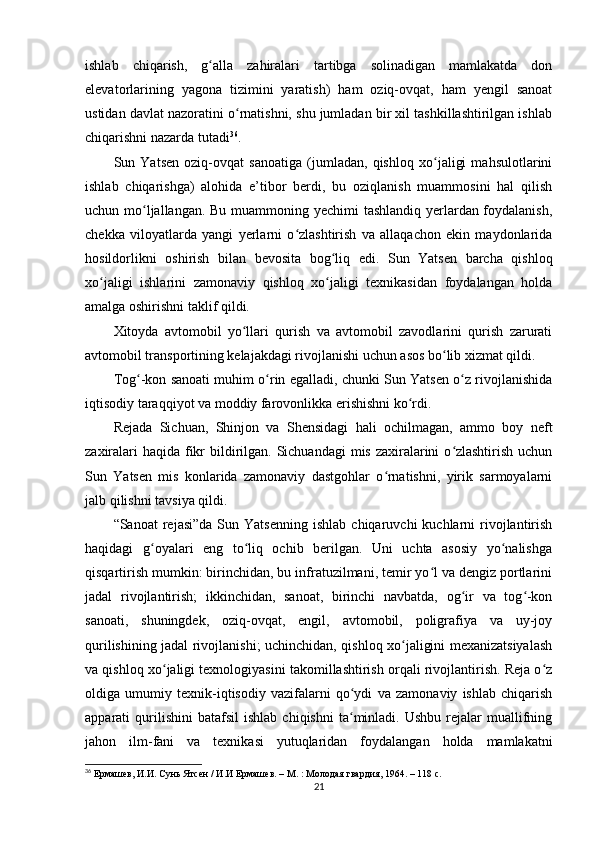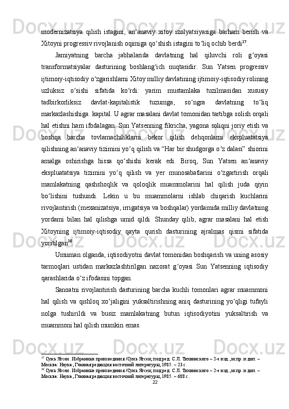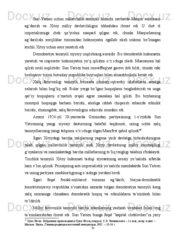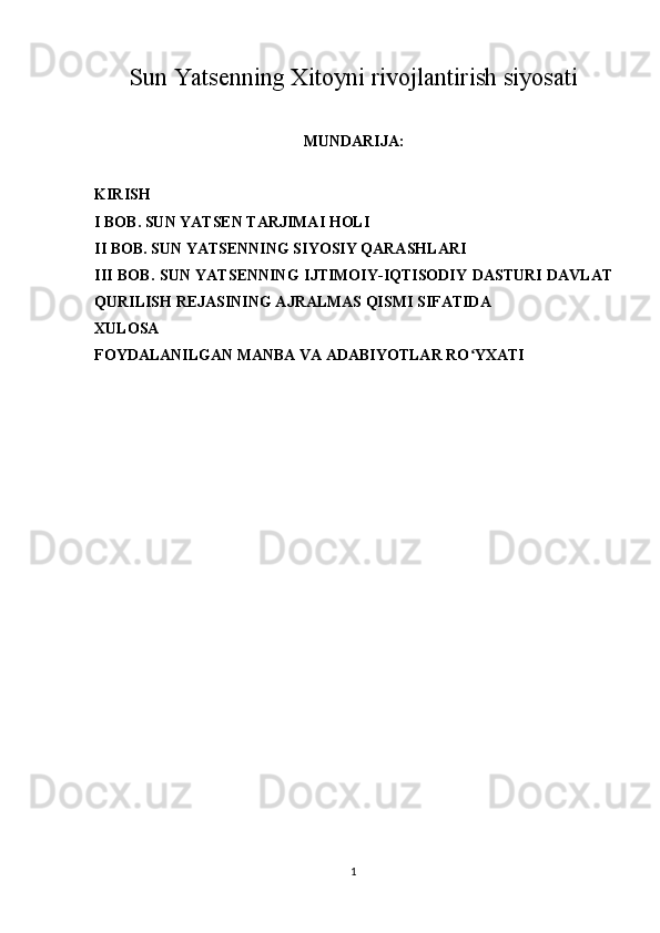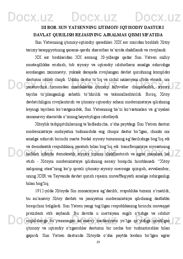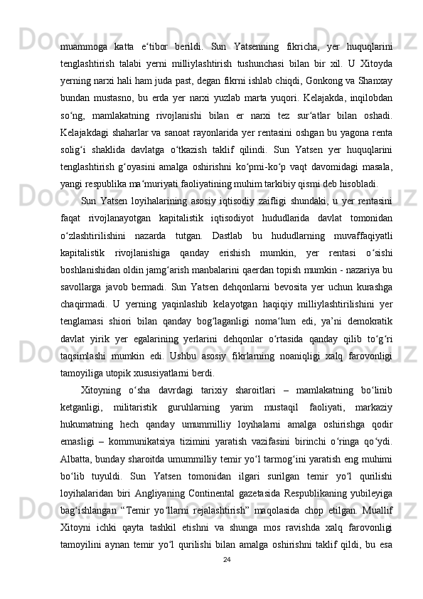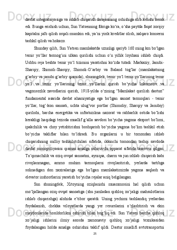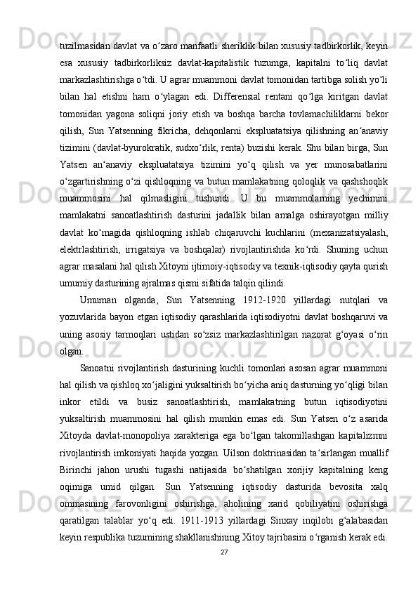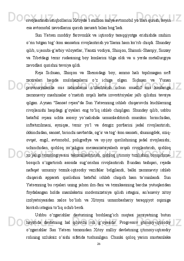 Sun Yatsenning Xitoyni rivojlantirish siyosati