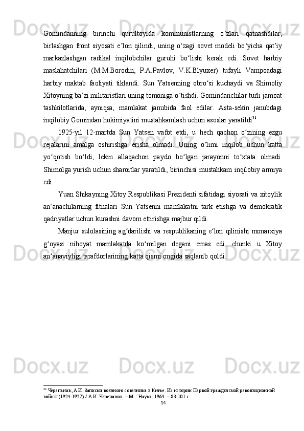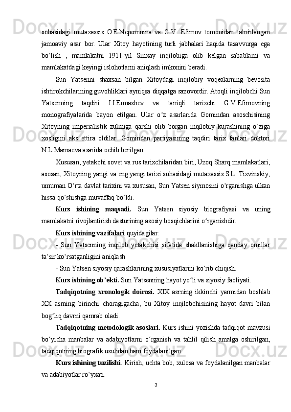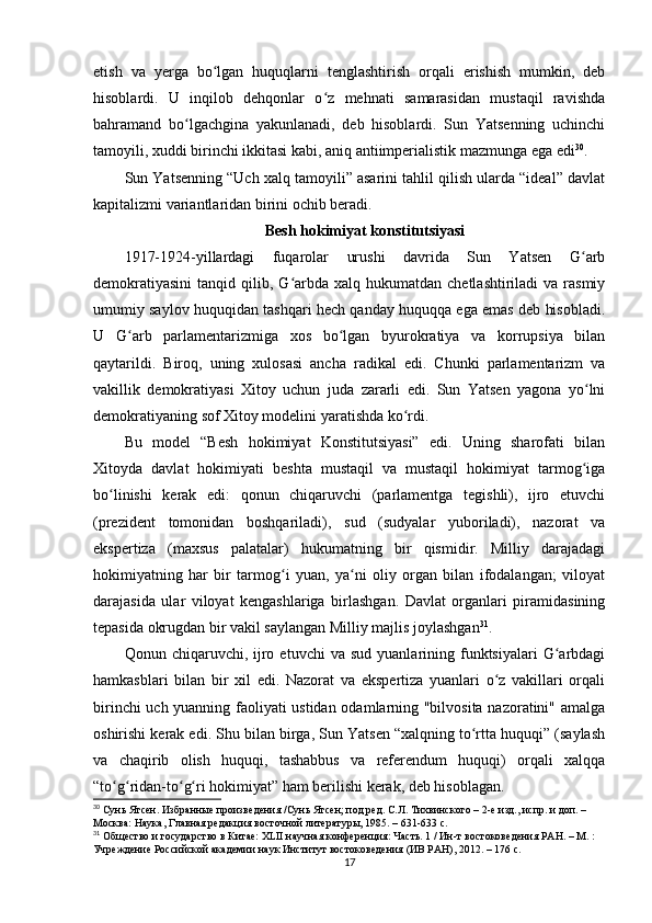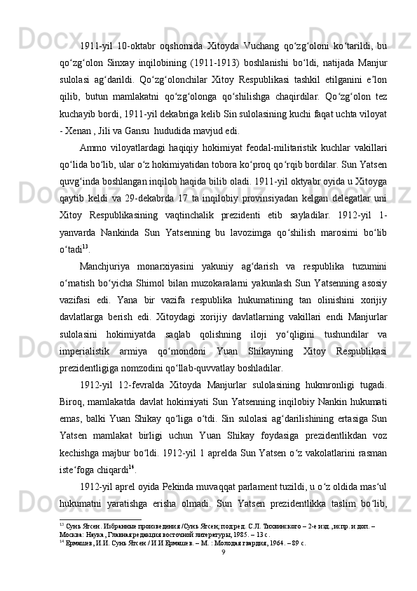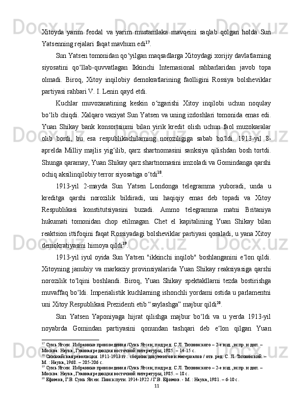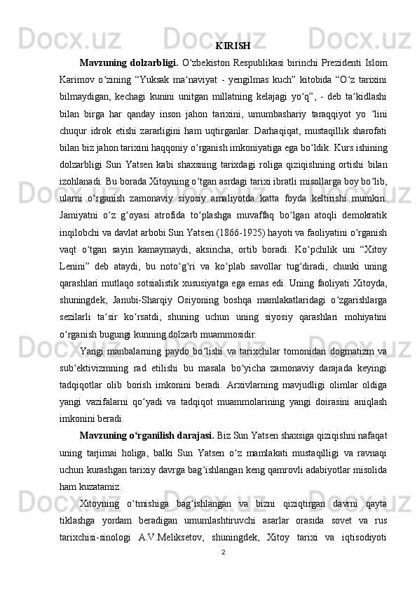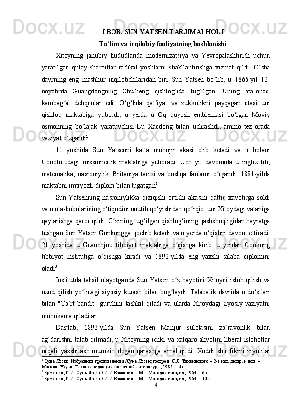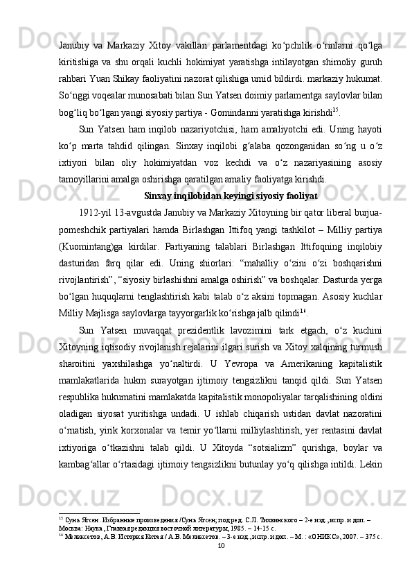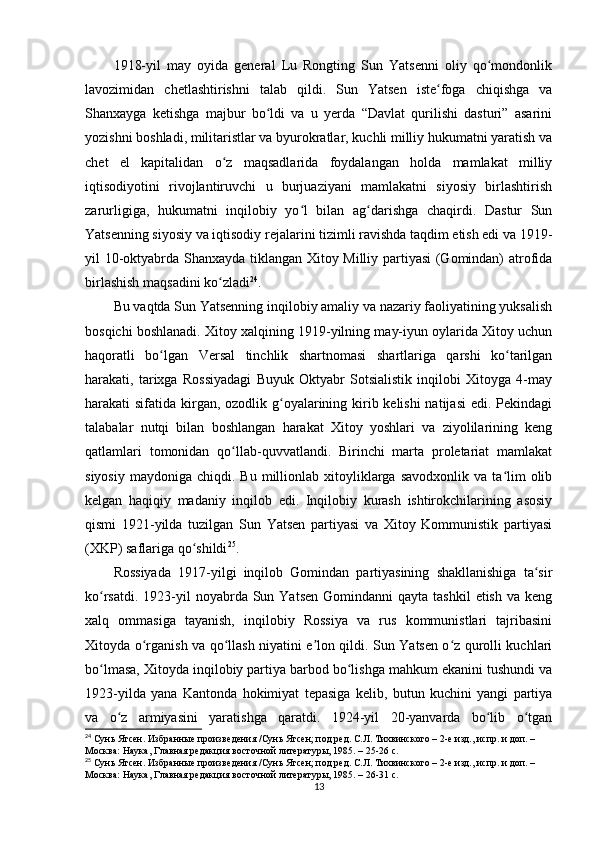 Sun Yatsenning Xitoyni rivojlantirish siyosati