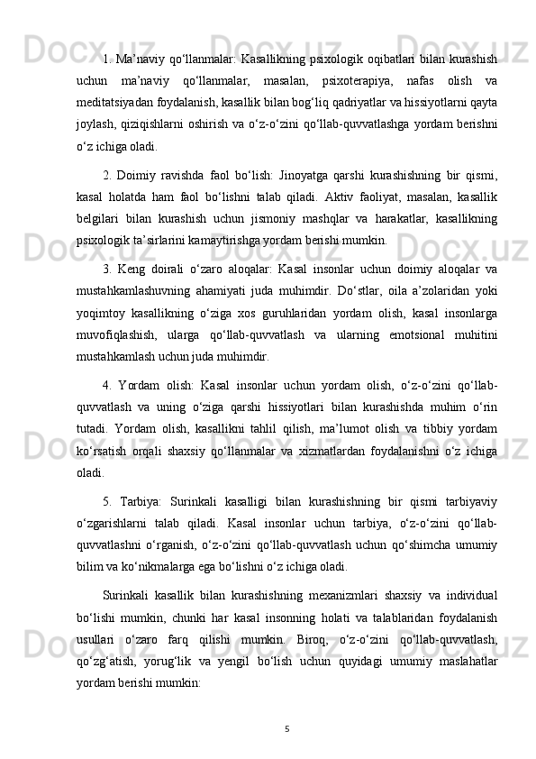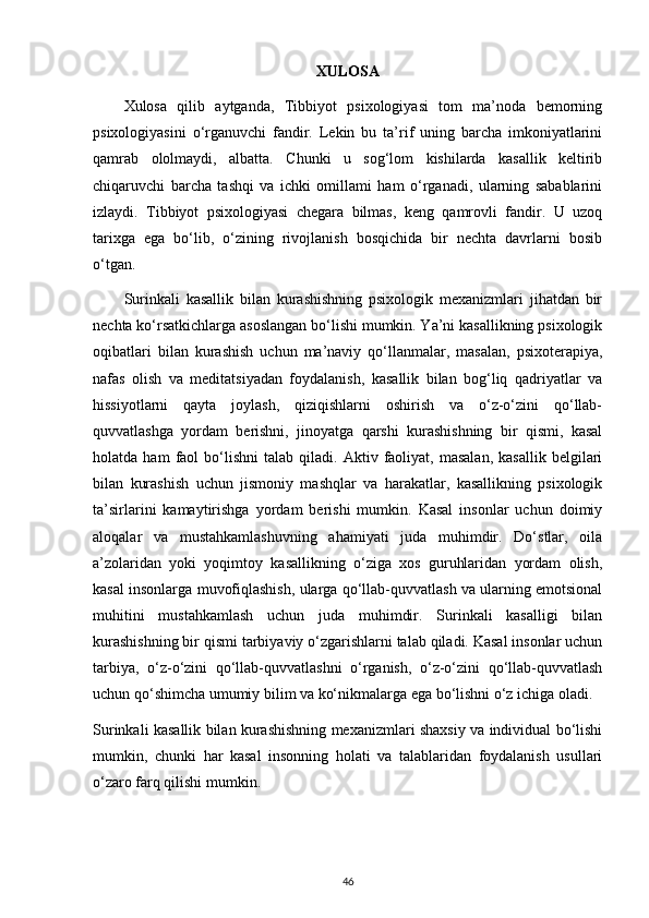 surinkali kasallikning pisixologik oqibatlari va unga qarshi kurashish mexanizmlari