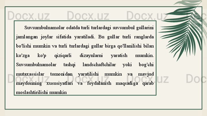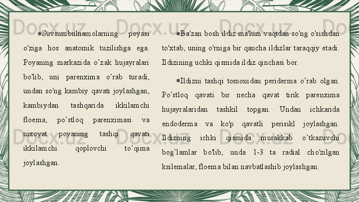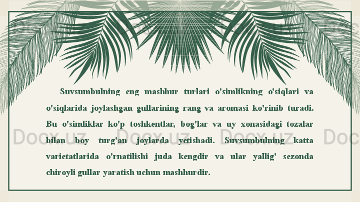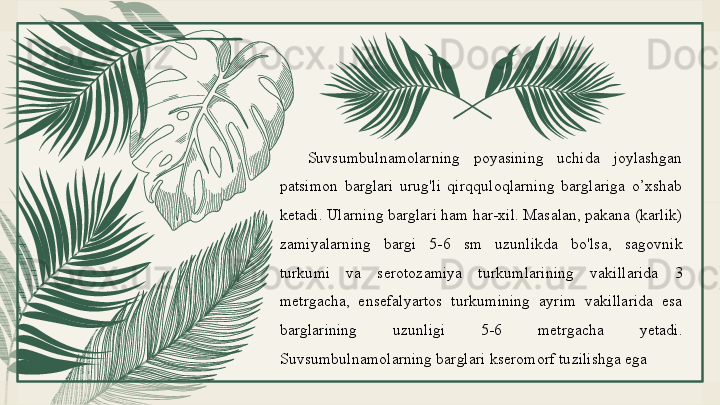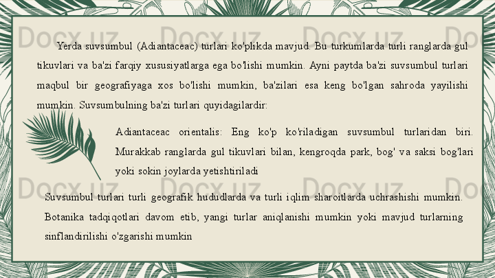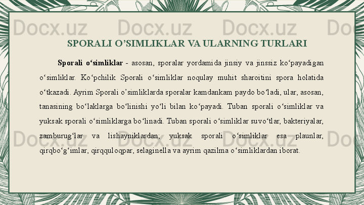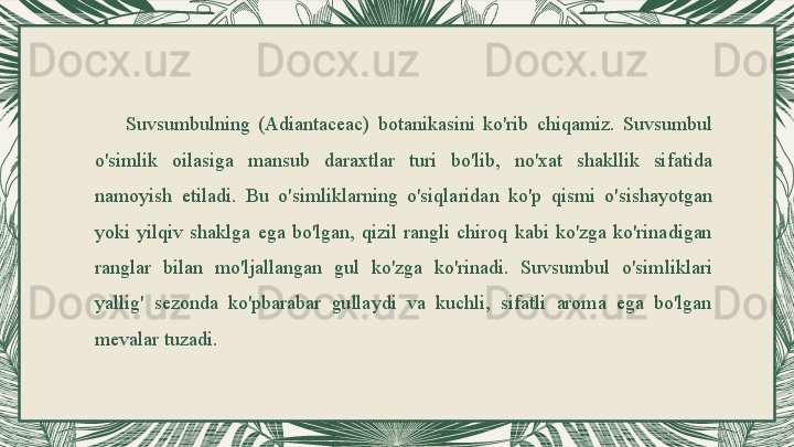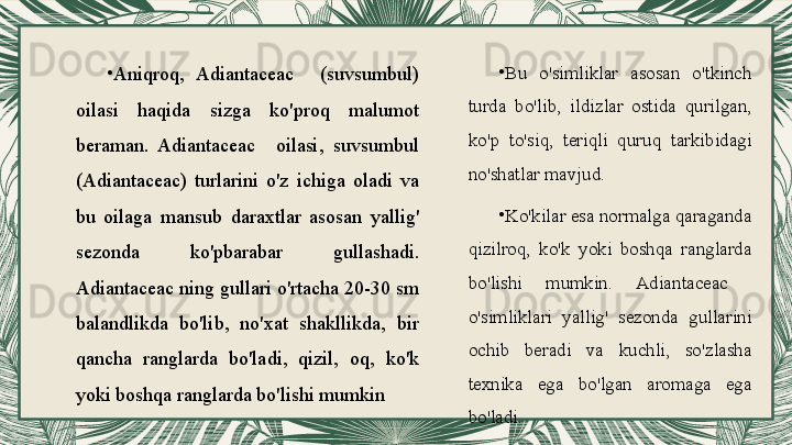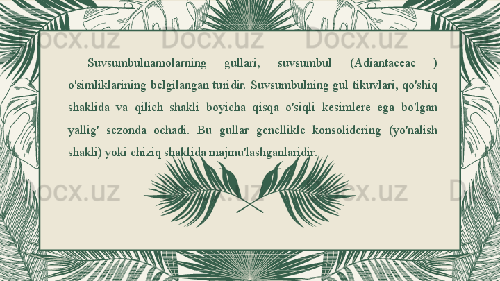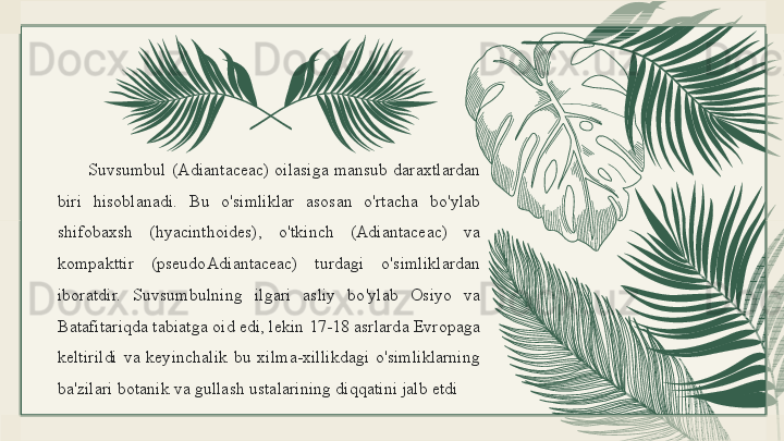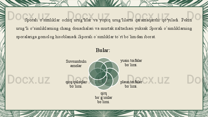 Botanika fanidan Sporali o'siimliklar turkumiga mansub Sumsumbuldoshlar oilasi ushun taqdimot