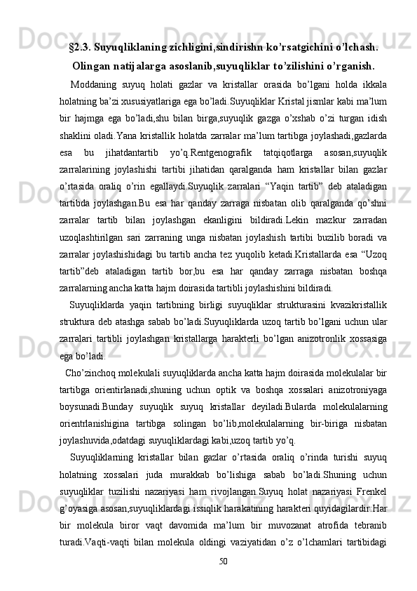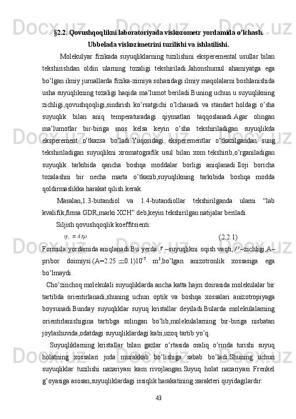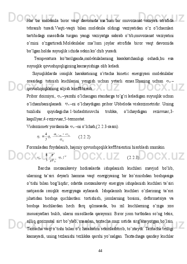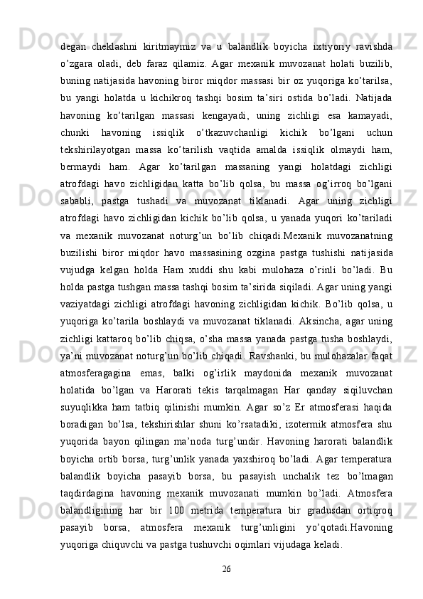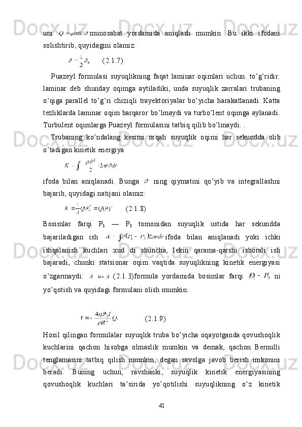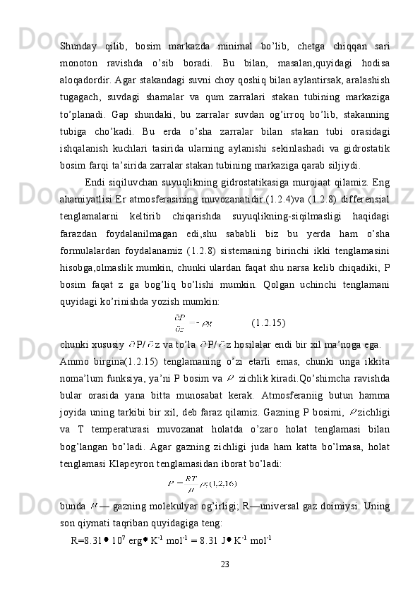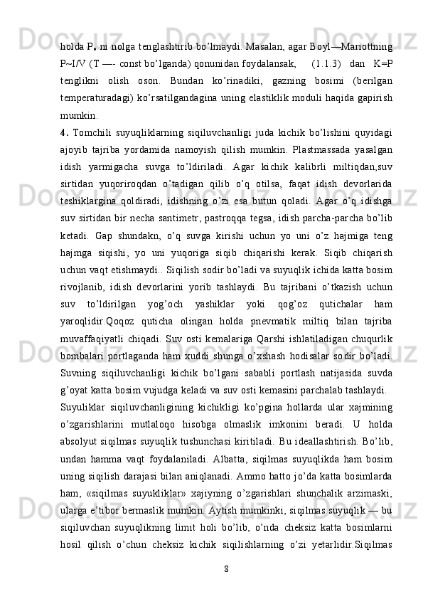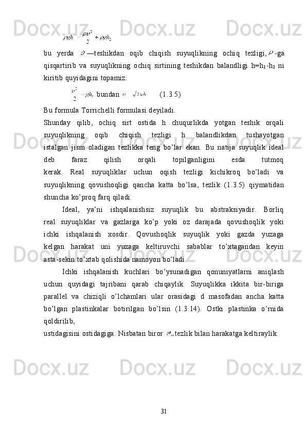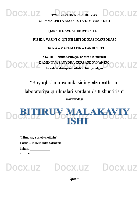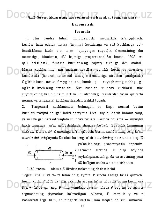 Suyuqliklar mexanikasining elementlarini laboratoriya qurilmalari yordamida tushuntirish