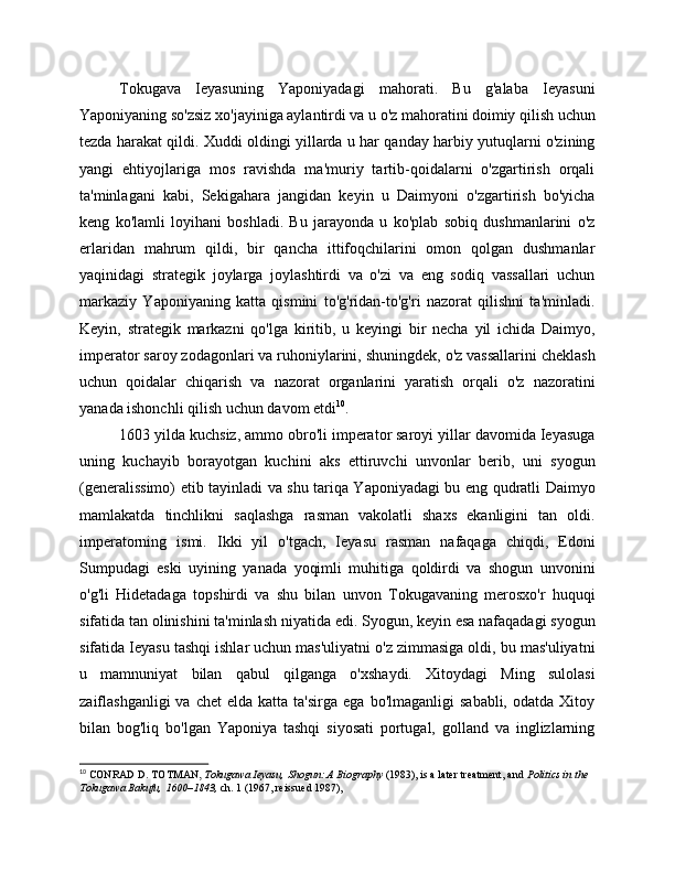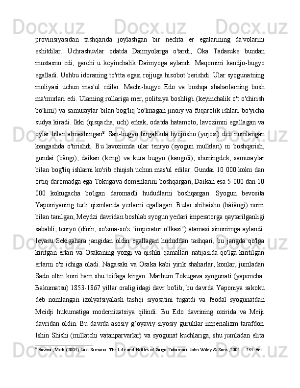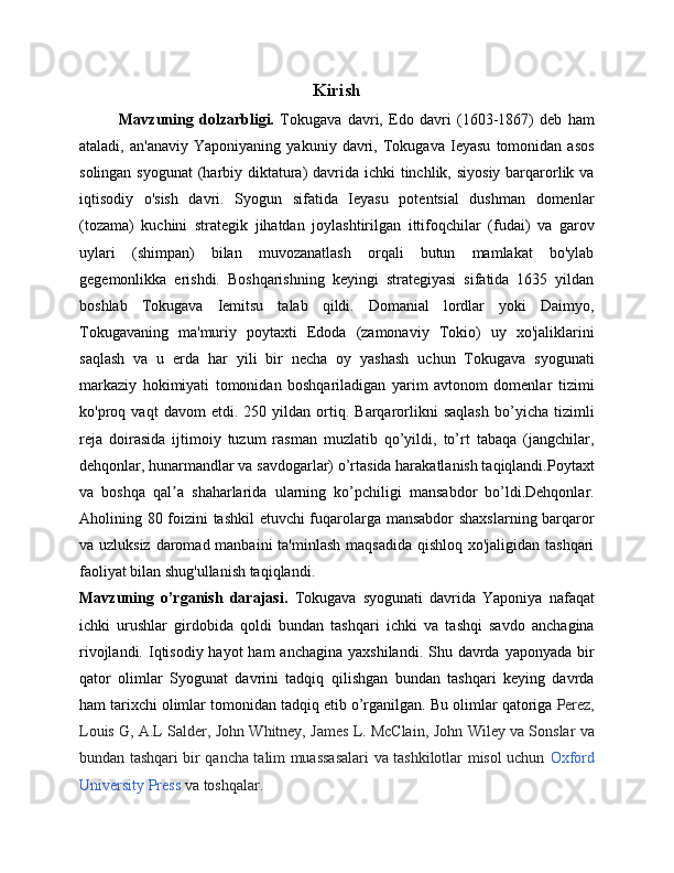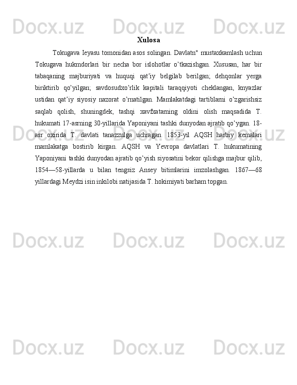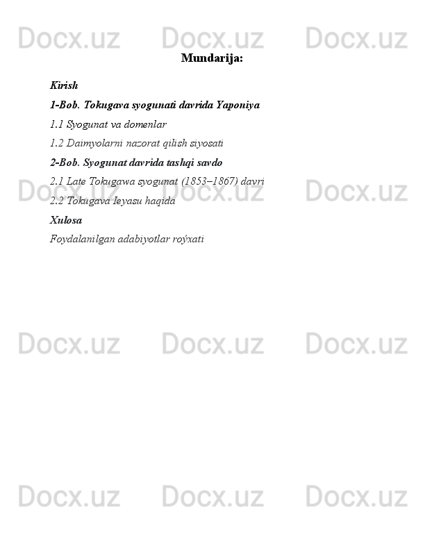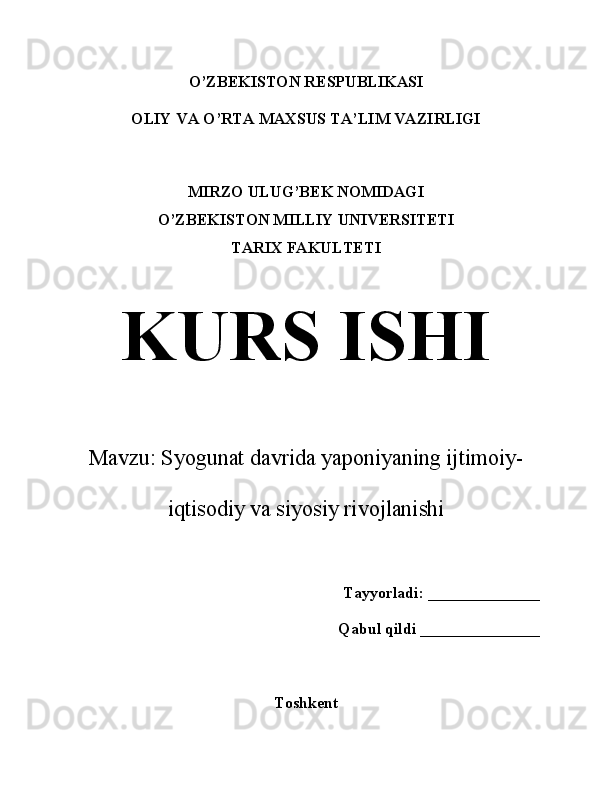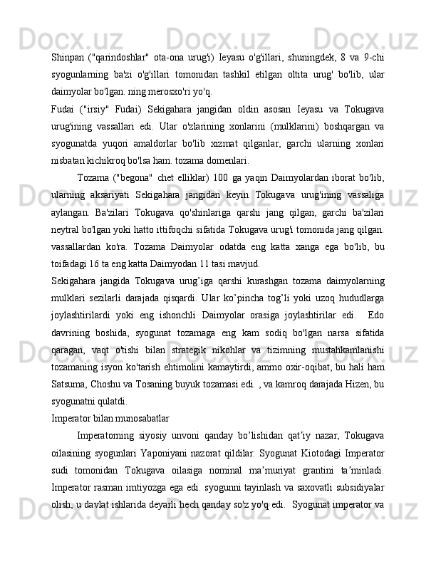 Syogunat davrida yaponiyaning ijtimoiy-iqtisodiy va siyosiy rivojlanishi