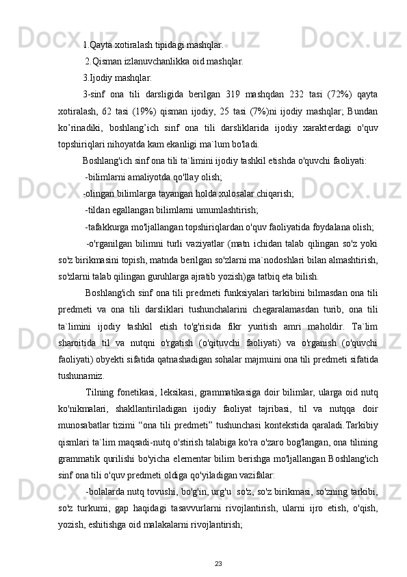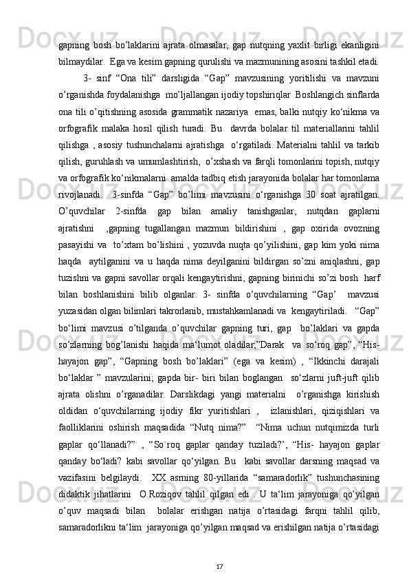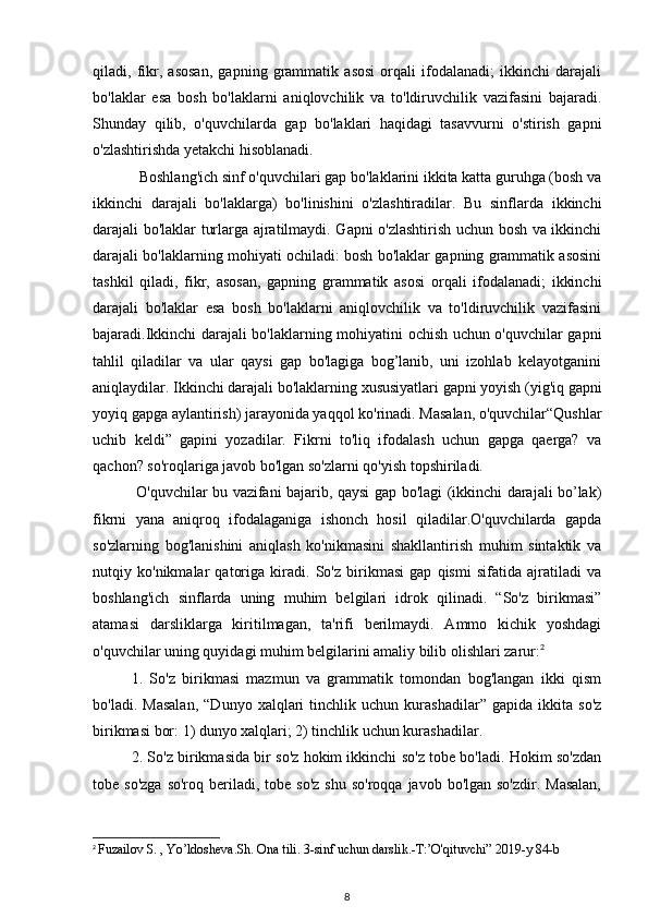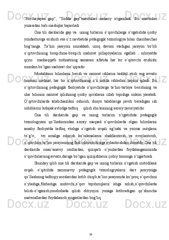 2.1.Ona tili darslarida gap va uning turlariga oid ko‘nikmalarni shakllantirish metodikasi 18