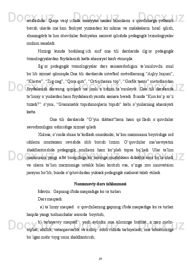 1.1.Ona tili darslarida gap va uning turlarini o‘rgatishning asosiy usullari 5