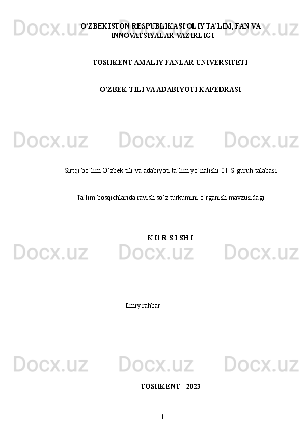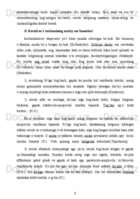 Ta’lim bosqichlarida ravish so'z turkumini o’rganish