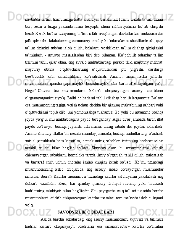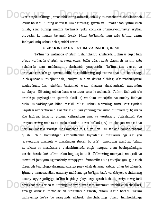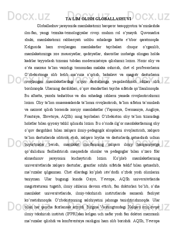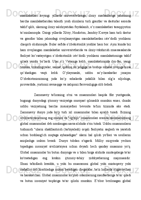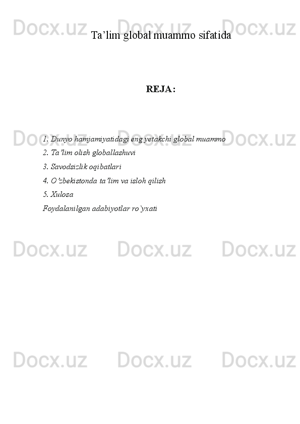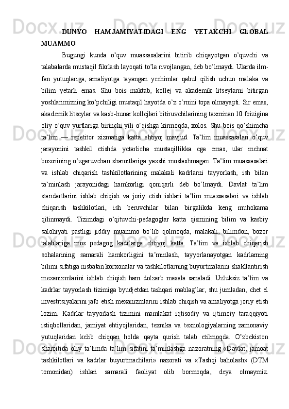 Ta’lim global muammo sifatida
