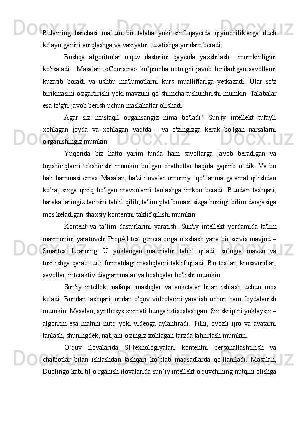 Ta’lim sohalaridagi sun’iy intellekt ilovalarini yaratish