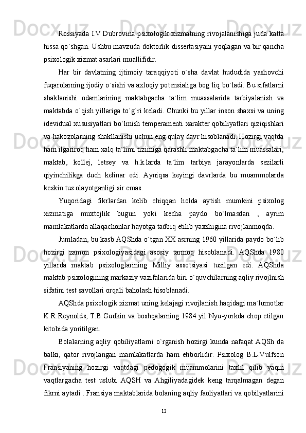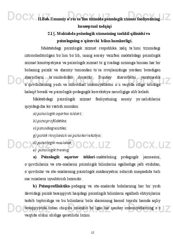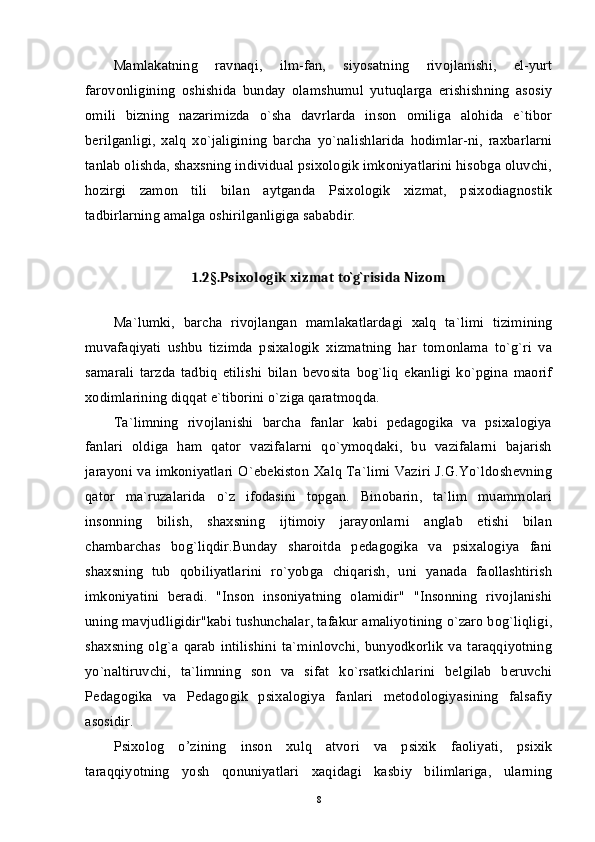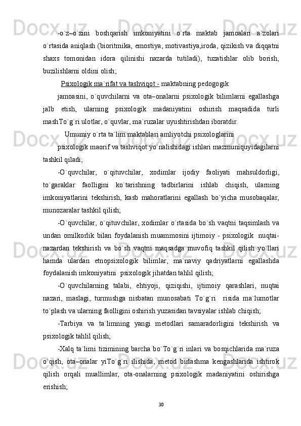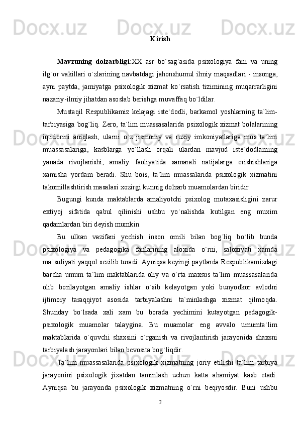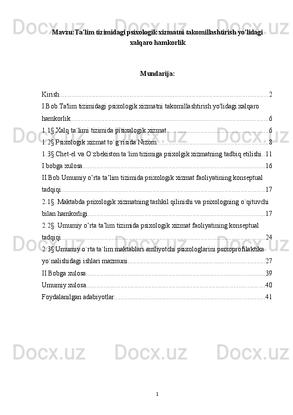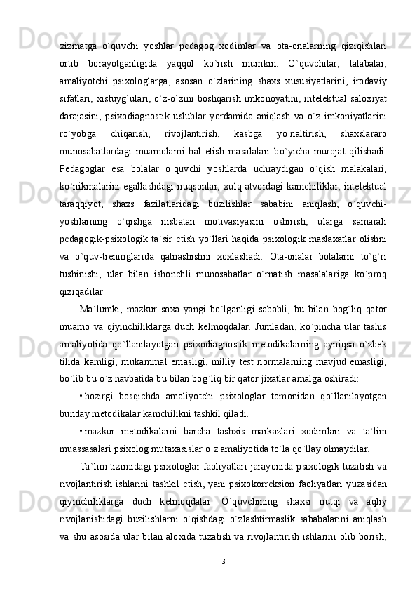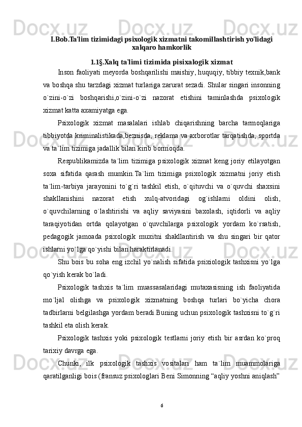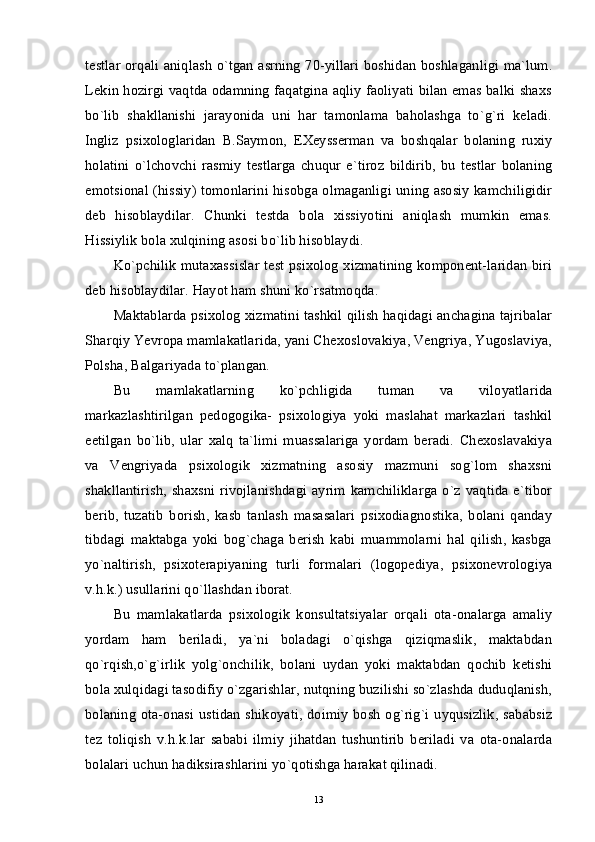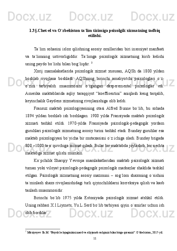 Ta'lim tizimidagi psixologik xizmatni takomillashtirish yo'lidagi xalqaro hamkorlik