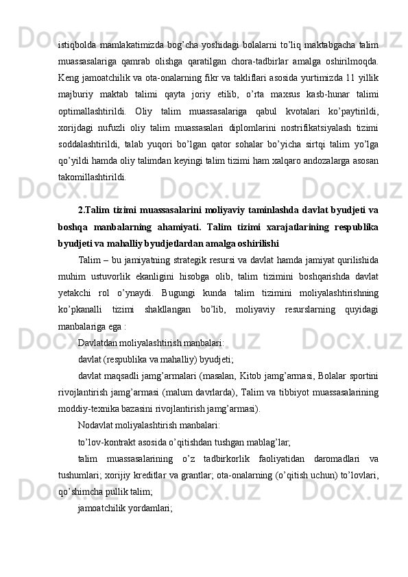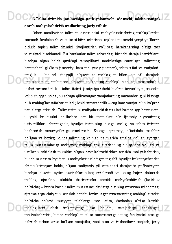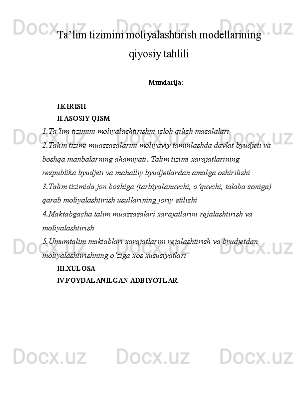 Ta’lim tizimini moliyalashtirish modellarining qiyosiy tahlili