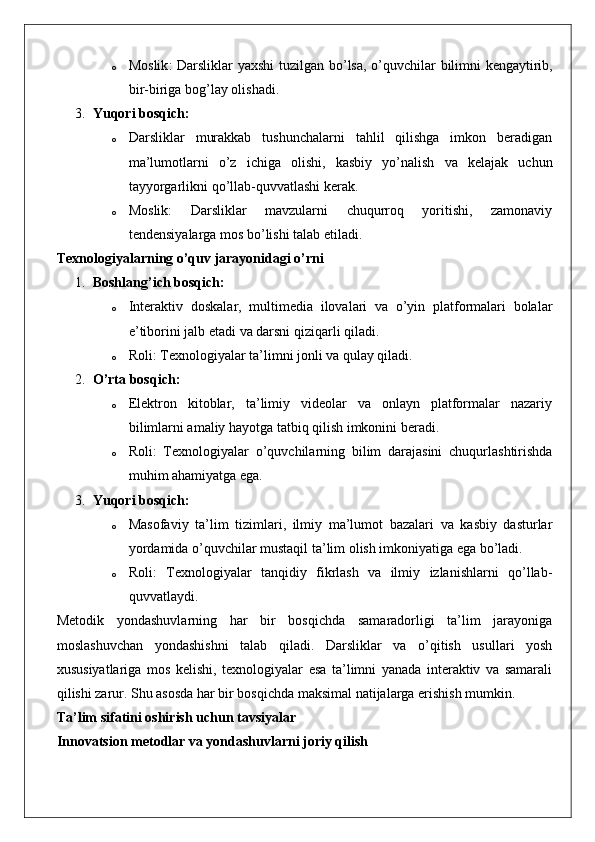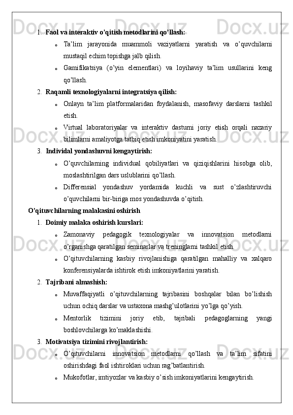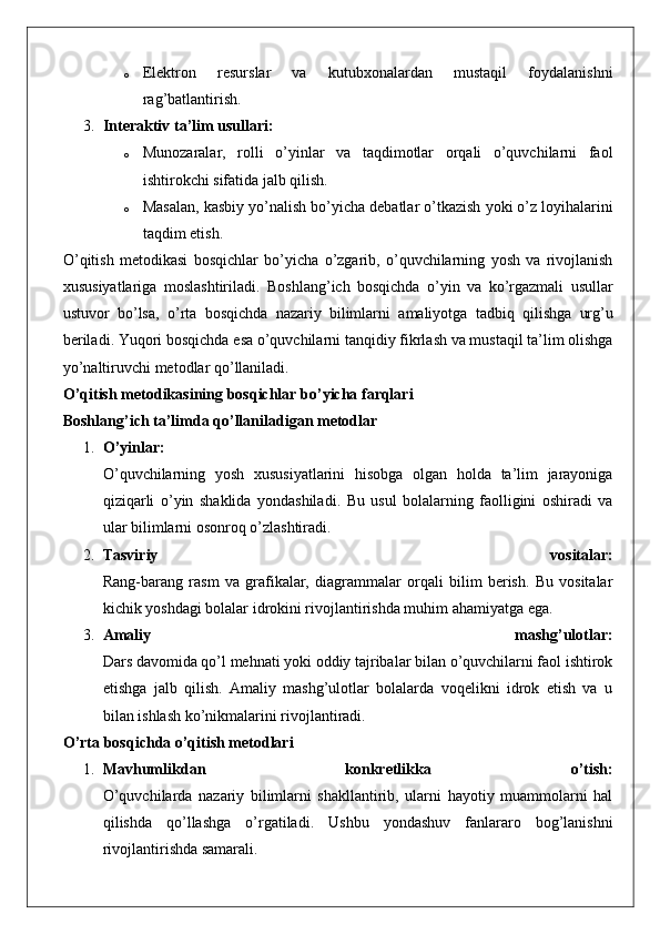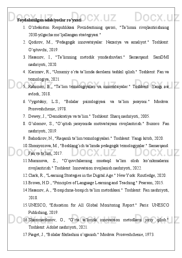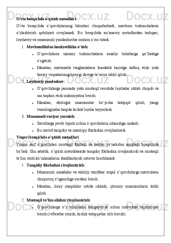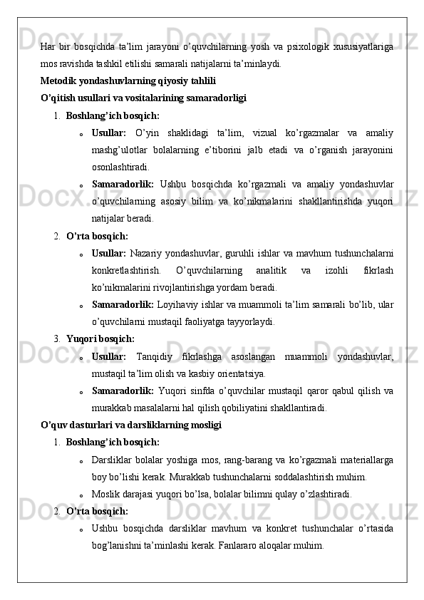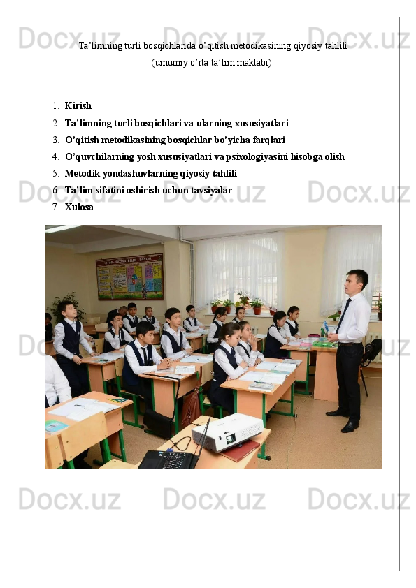 Ta'limning turli bosqichlarida o'qitish metodikasining qiyosiy tahlili (umumiy o'rta ta'lim maktabi) 24