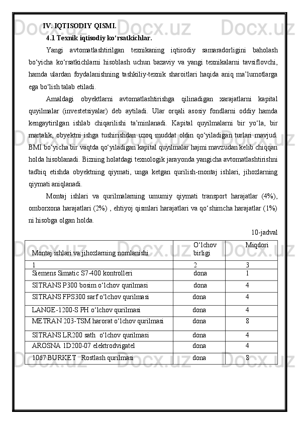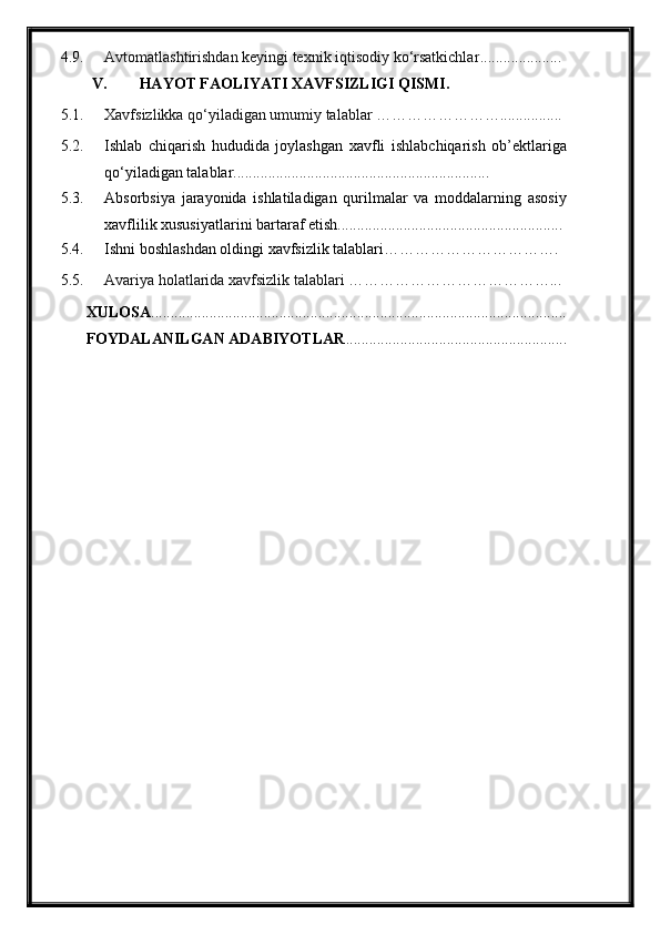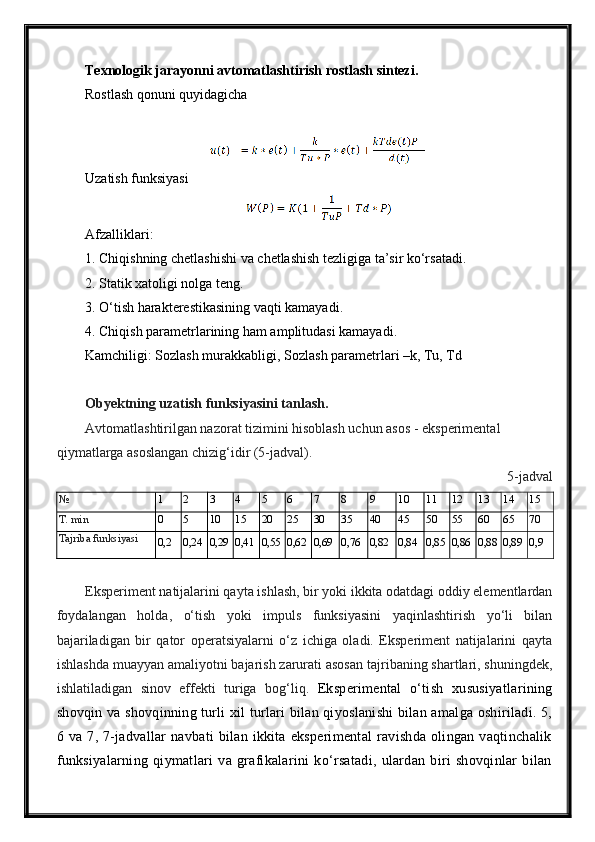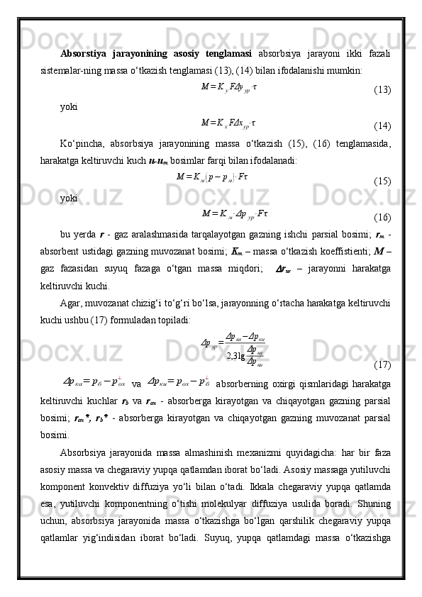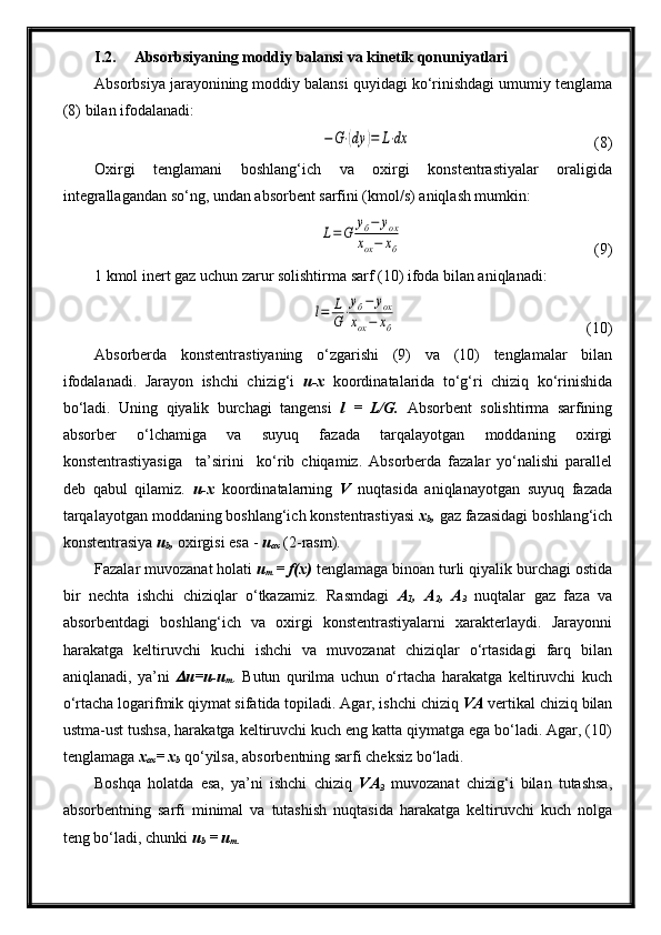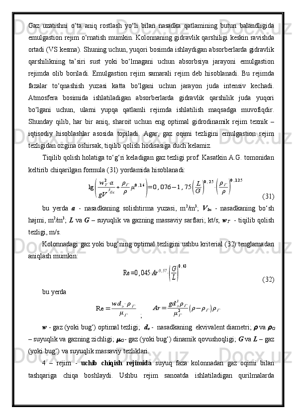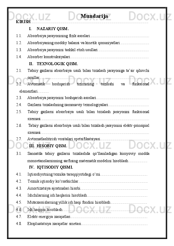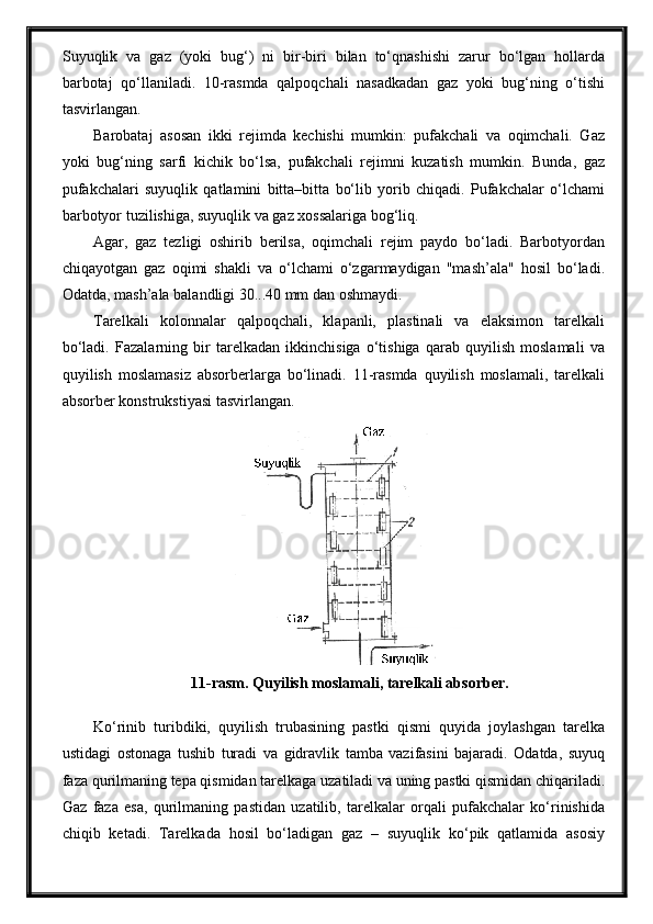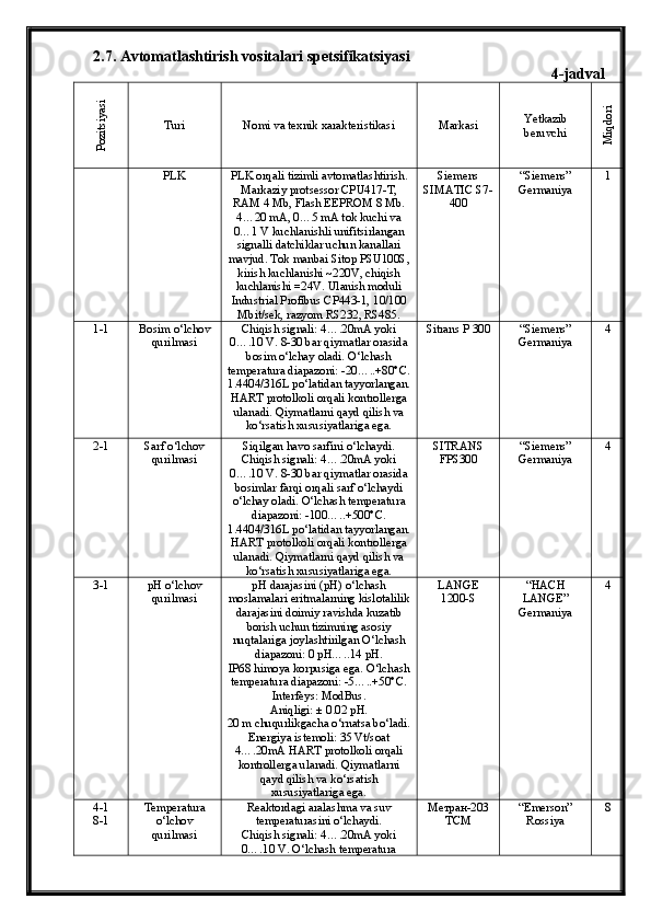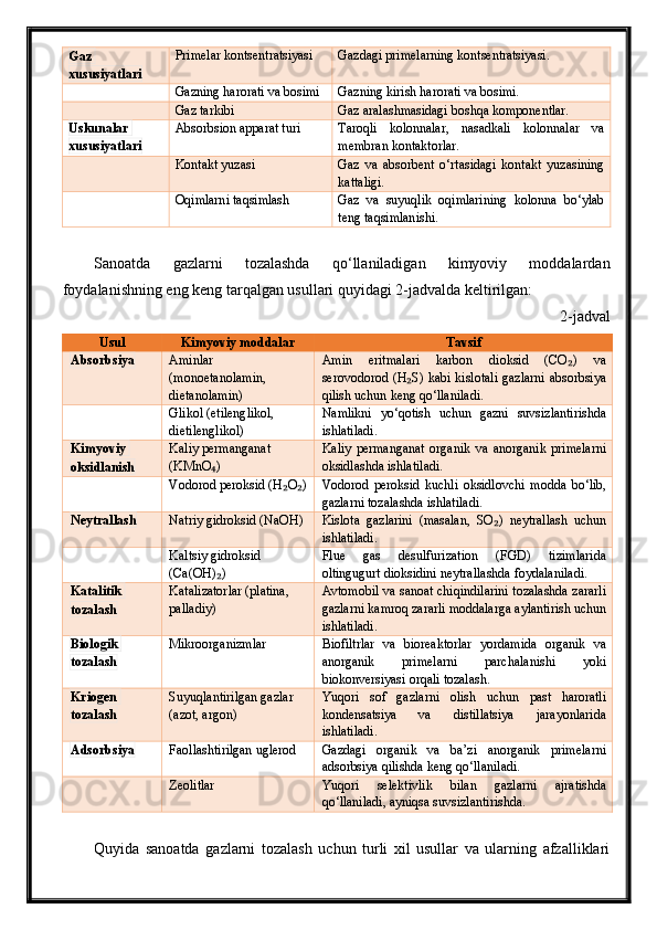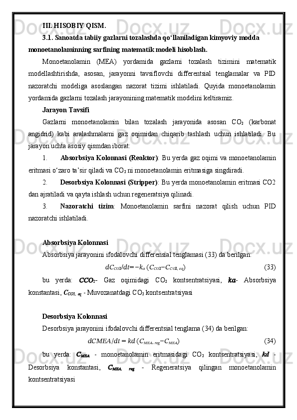 Tabiiy gazlarni absorbsiya usuli bilan tozalash jarayonini avtomatlashtirish