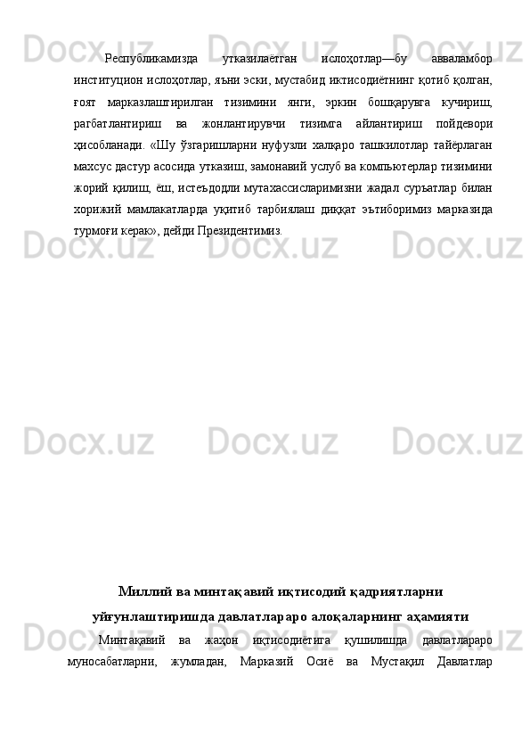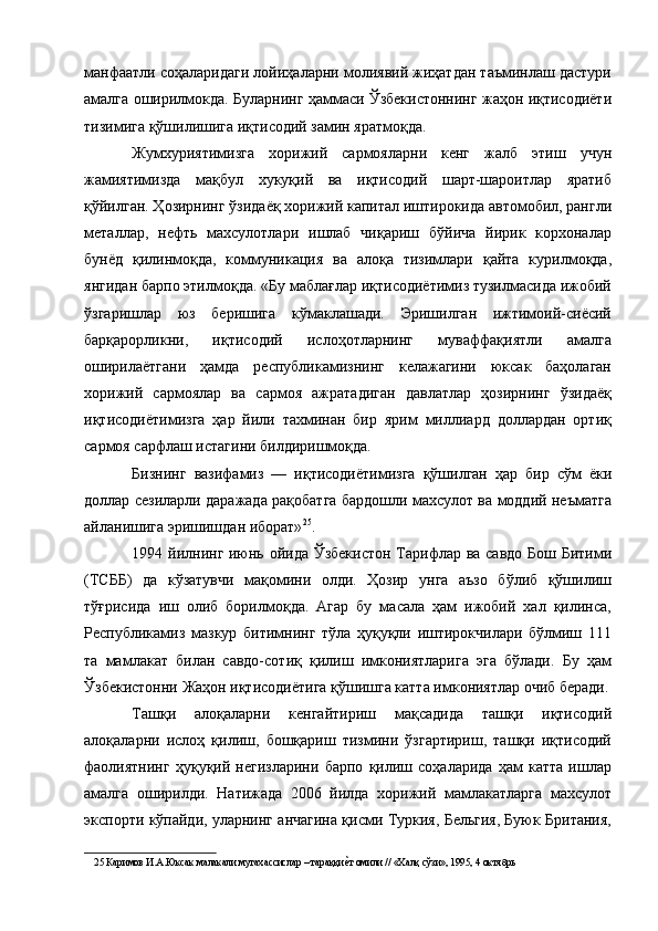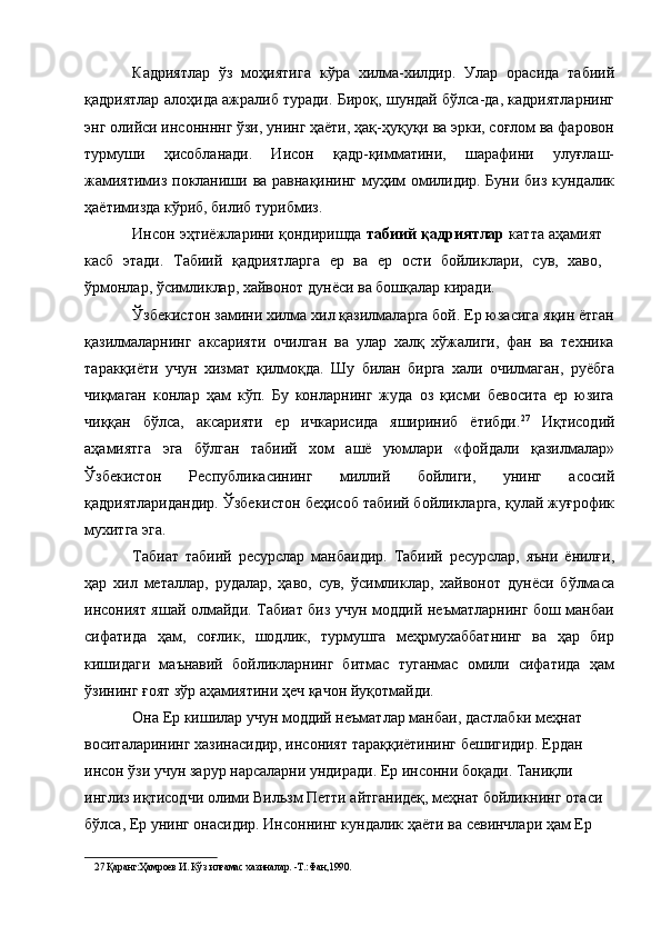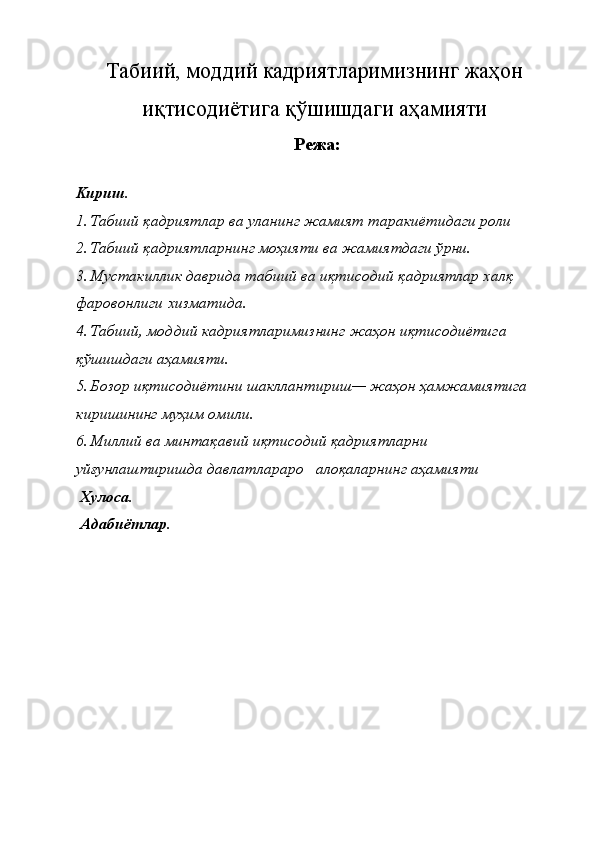 Табиий, моддий кадриятларимизнинг жаҳон иқтисодиётига қўшишдаги аҳамияти