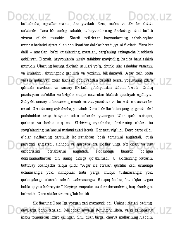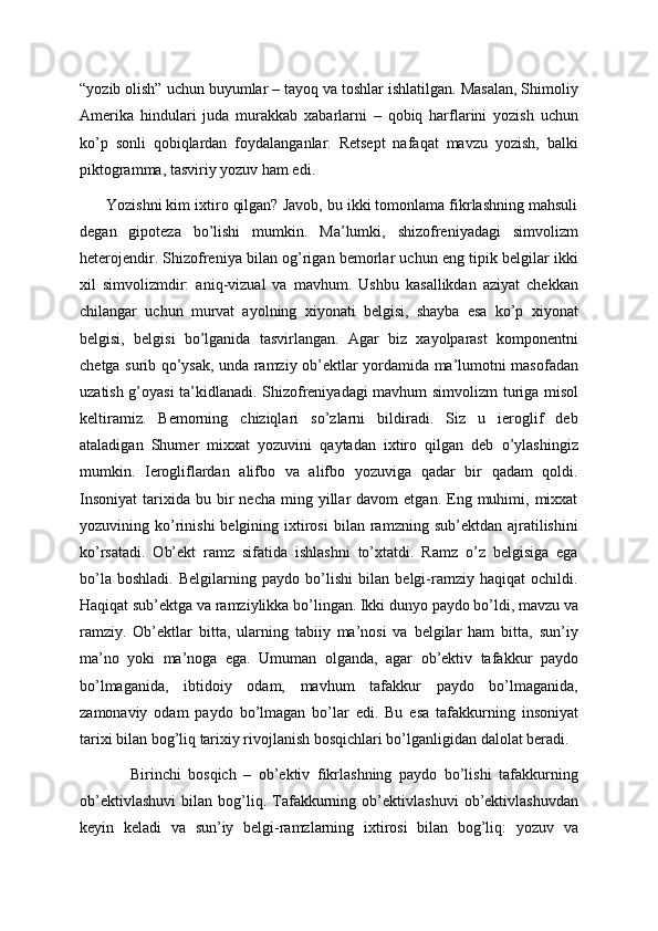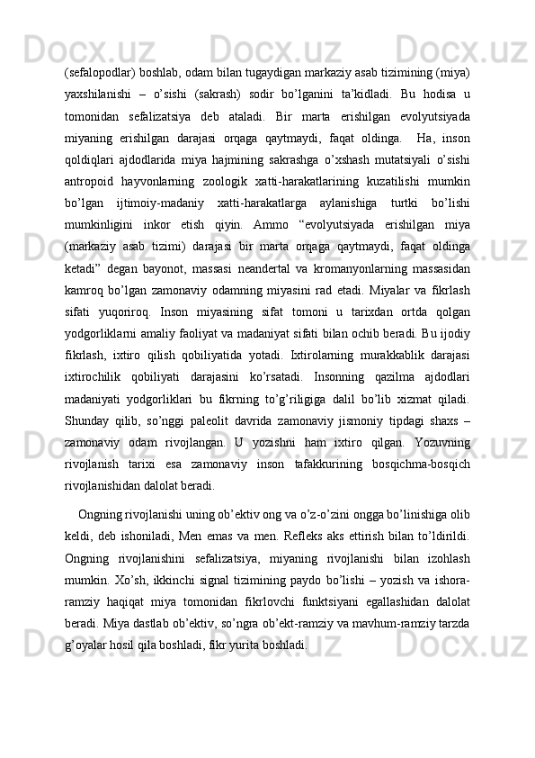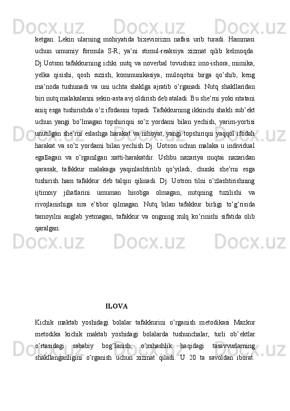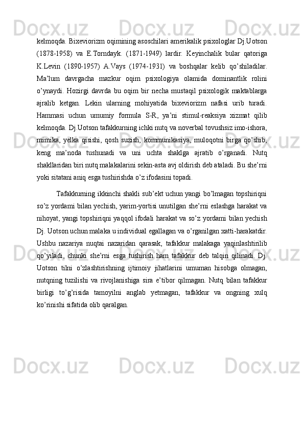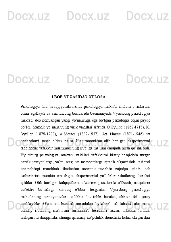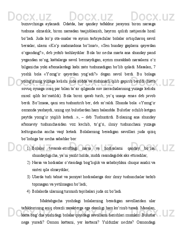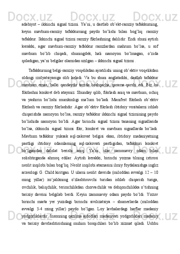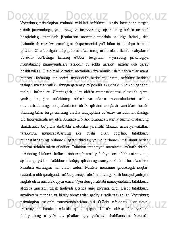 Psixologiya va falsafada tafakkur muammosi, Tafakkur evolyutsiyasi va tarixiy taraqqiyoti, Turli yosh davrlarida tafakkur jarayonining rivojlanishi , Individ, maktabgacha va kichik maktab yoshida tafakkur jarayoni, O’smirlik, o'spirinlik, yoshlik va yetuklik davri tafakkurining xususiyatlari, Tafakkur rivojlanishining asosiy bosqichlari.