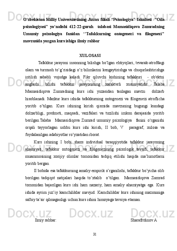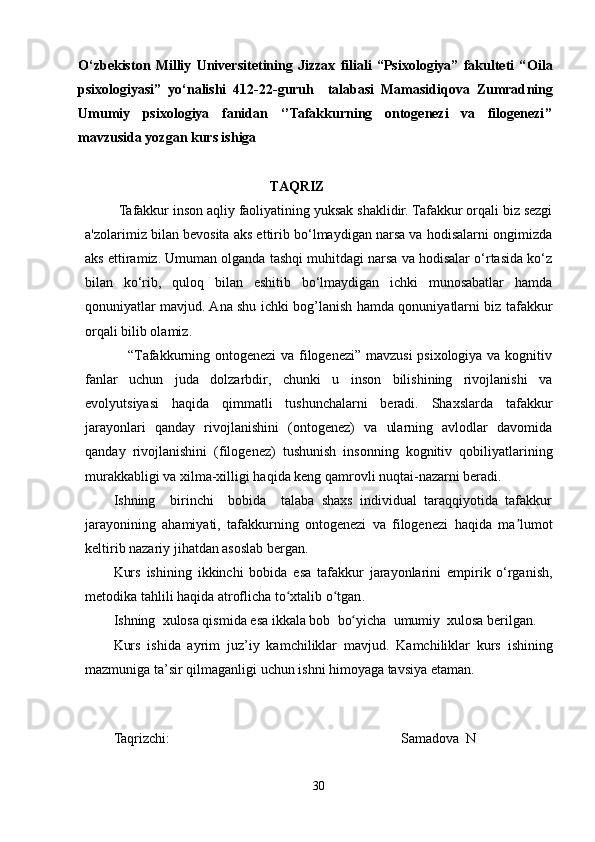 Tafakkur ontogenezi va filogenezi SPSS