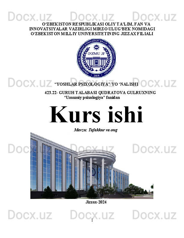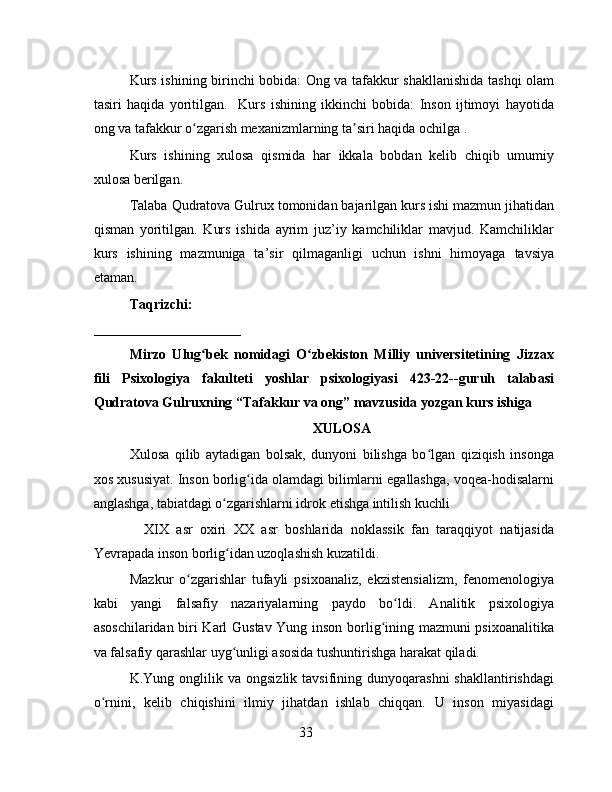 Qudratova Gulruxning “Tafakkur va ong” mavzusida yozgan kurs ishiga
