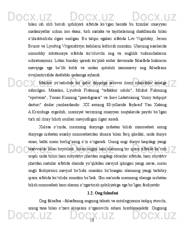 o zlashtirilishi   ilgari   surilgan.   Bu   talqin   egalari   sifatida   Lev   Vigotskiy,   Jerom