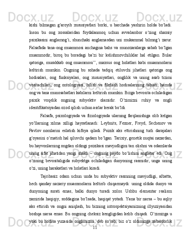 yaratganning   qudrati,   fazlu   karami   deb   hisoblaydi.   Ongning   mohiyatini