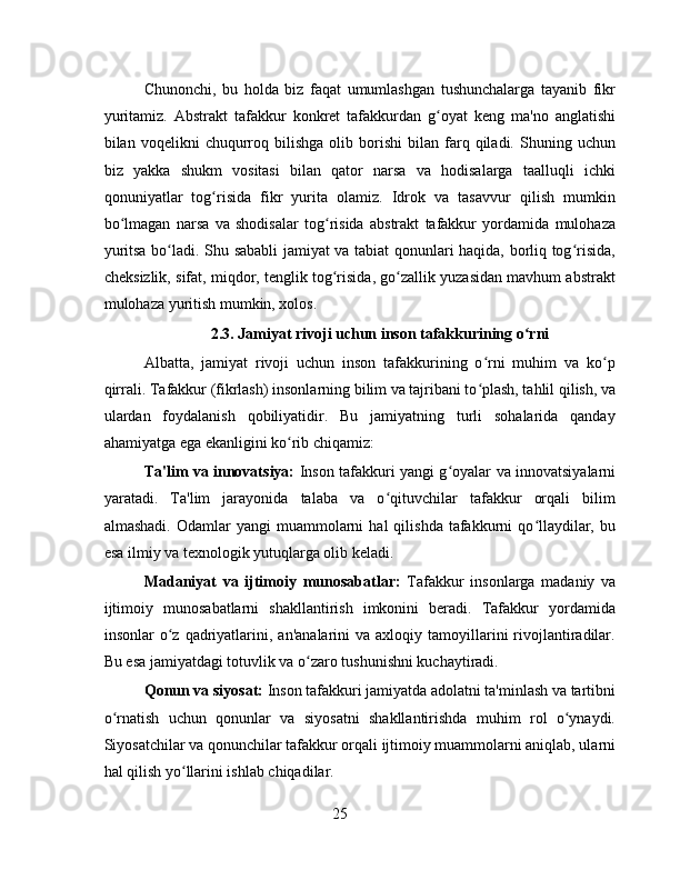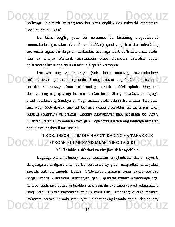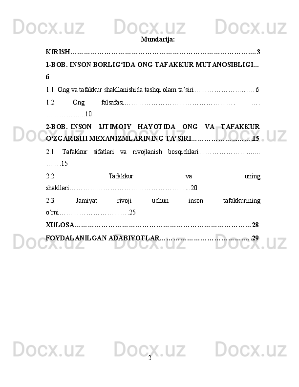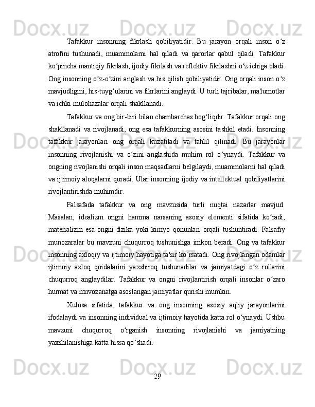 2-BOB.  INSON IJTIMOIY HAYOTIDA ONG VA TAFAKKUR