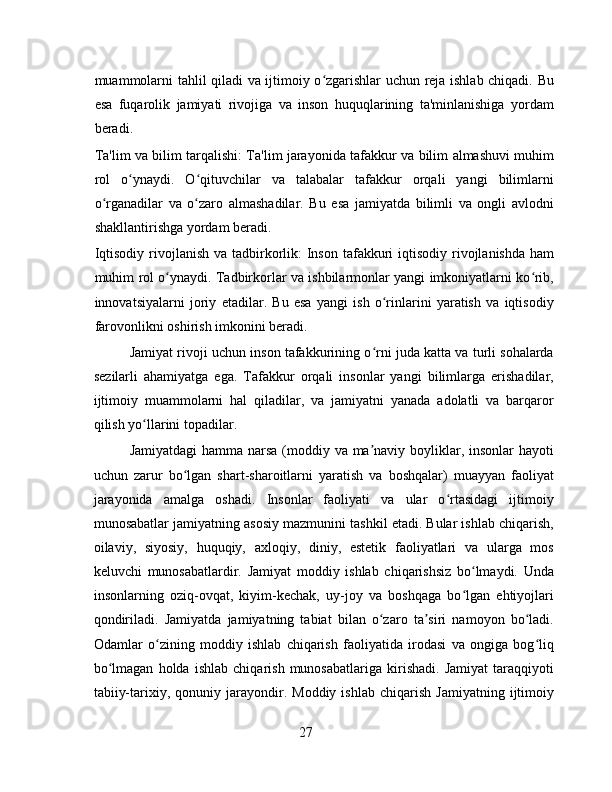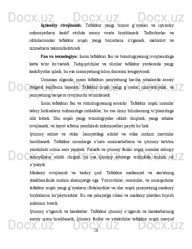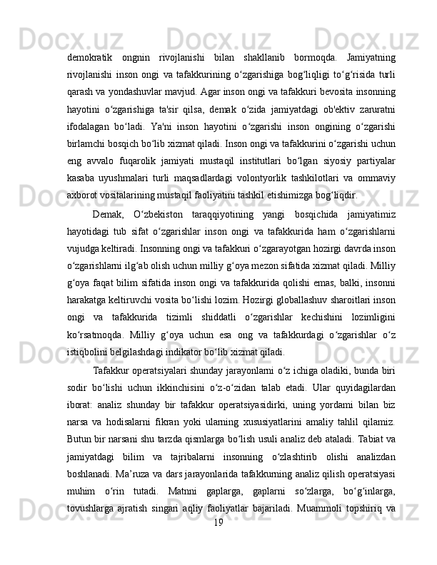 Chunki, unda inson ongi va tafakkurini o zgarishi va ijtimoiy hayot sohalarining