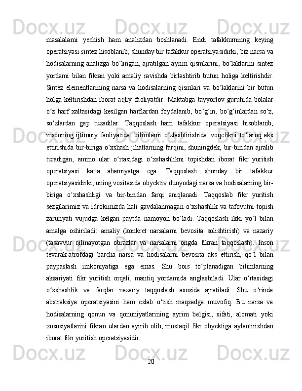 vaziyatdan, tafakkurning maqsadi bo lgan savolga javobdan boshlanadi.