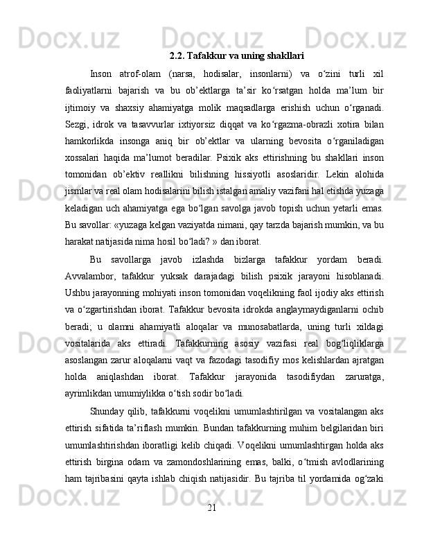 2.1. Tafakkur sifatlari va rivojlanish bosqichlari.