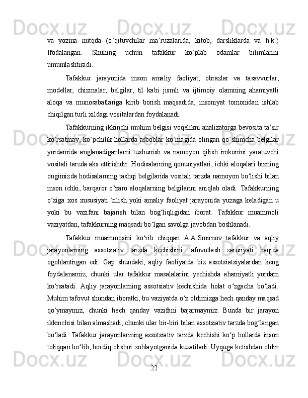 Tafakkur   muammosini   ko rib   chiqqan   A.A.Smirnov   tafakkur   va   aqliy