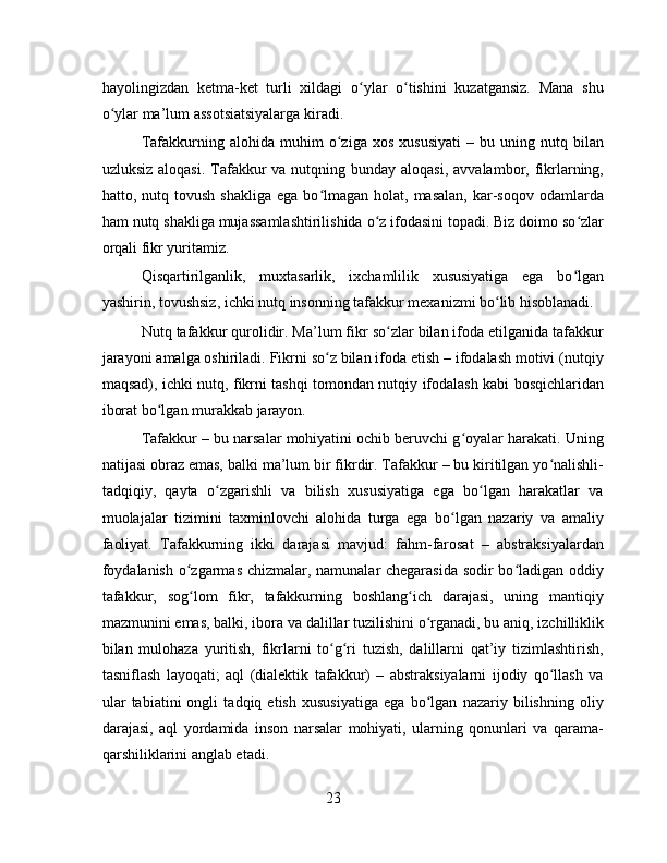 bo ladi.  Tafakkur  jarayonlarining assotsiativ  tarzda  kechishi   ko p  hollarda inson