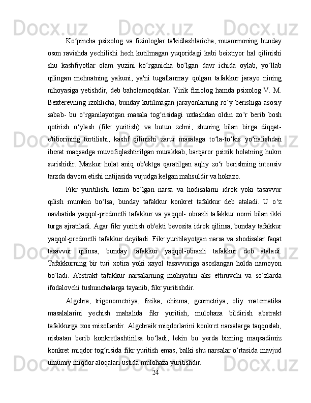 ko rsatadi.   Aqliy   jarayonlarning   assotsiativ   kechishida   holat   o zgacha   bo ladi.