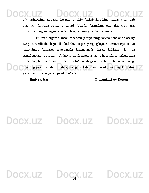 jarayonini   tashkil   etmaydi.   Lekin   bu   yo l   bilan   tarkib   topgan   g oya   insonni