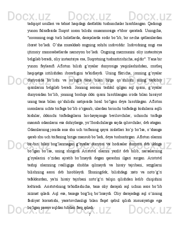 darajasi,   aql   yordamida   inson   narsalar   mohiyati,   ularning   qonunlari   va   qarama-