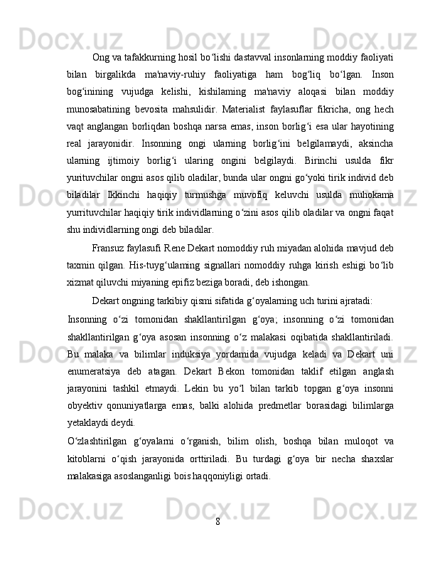 munosabatining   bevosita   mahsulidir.   Materialist   faylasuflar   fikricha,   ong   hech