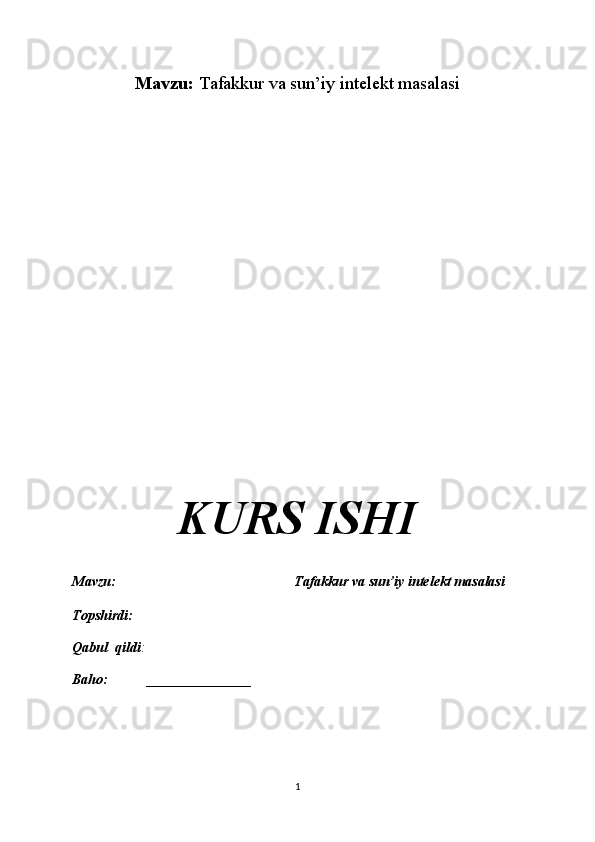 Mavzu:                                                   Tafakkur va sun’iy intelekt masalasi